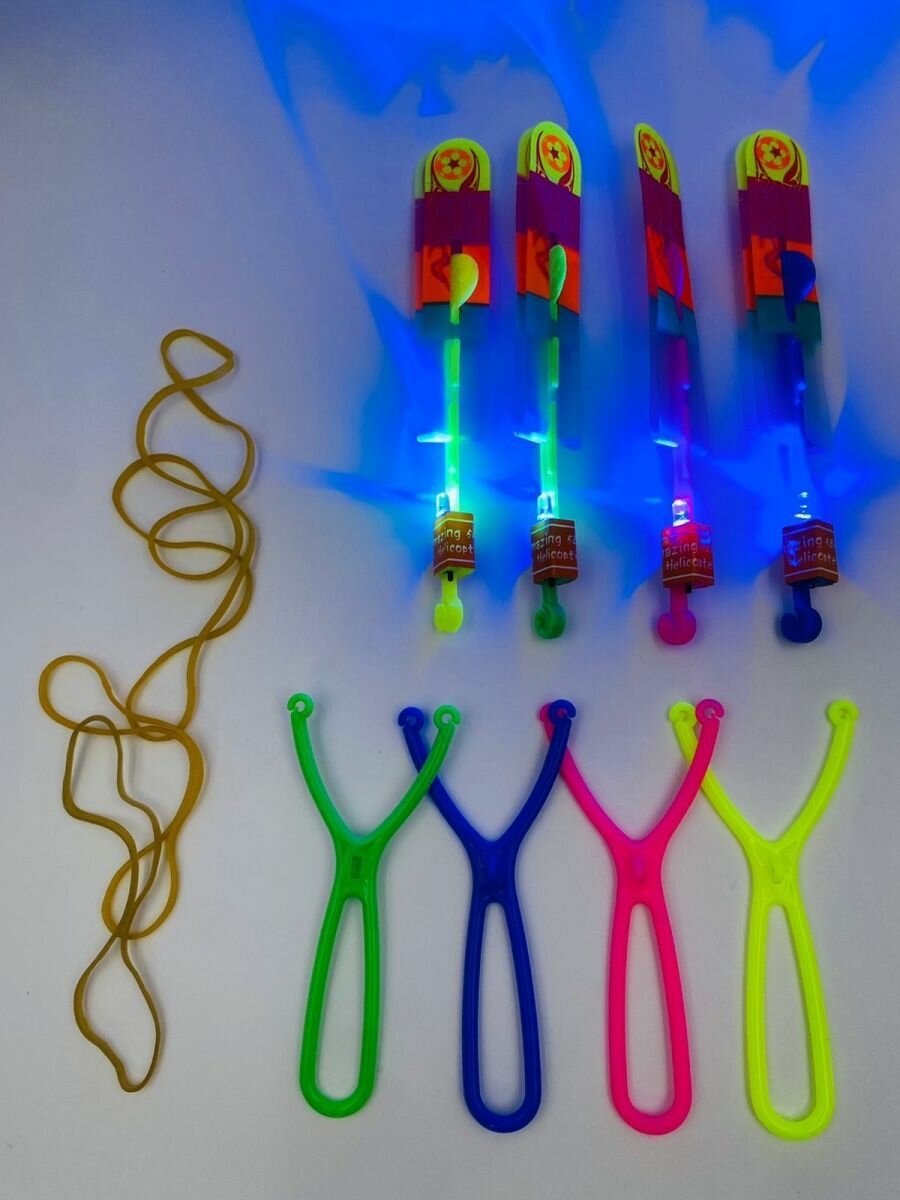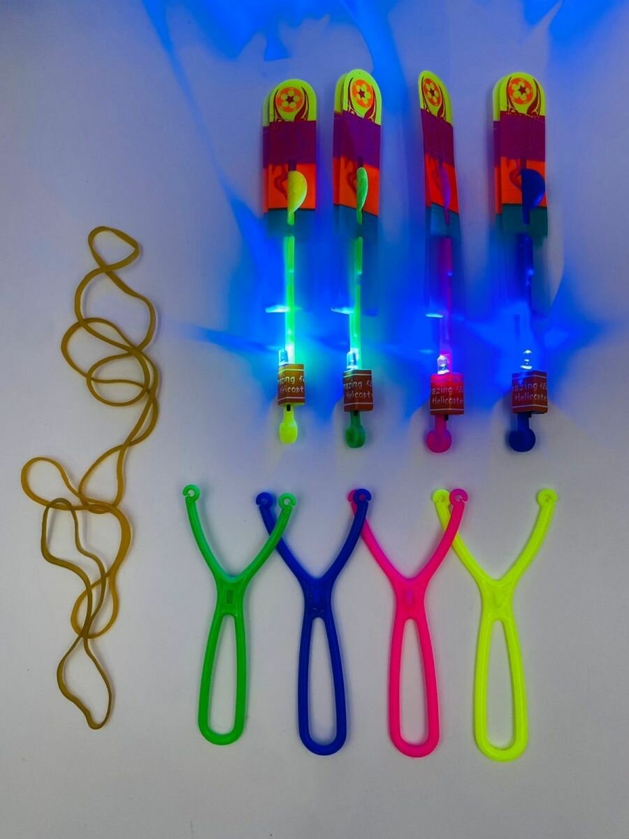 Купить Рогатка вертолет светящийся/Светящийся вертолетик/Вертушка/ набор 4 штук/ рогатка светодиодная