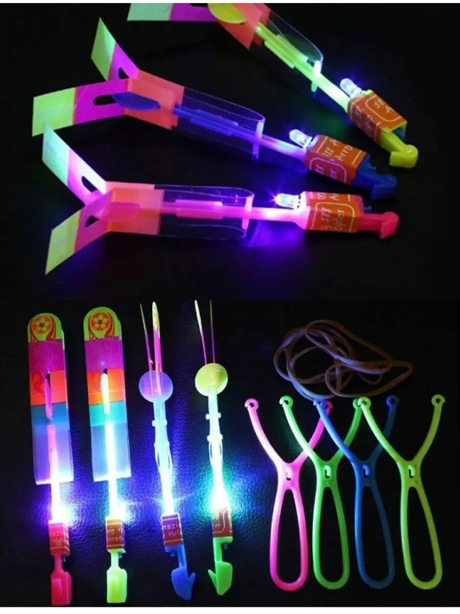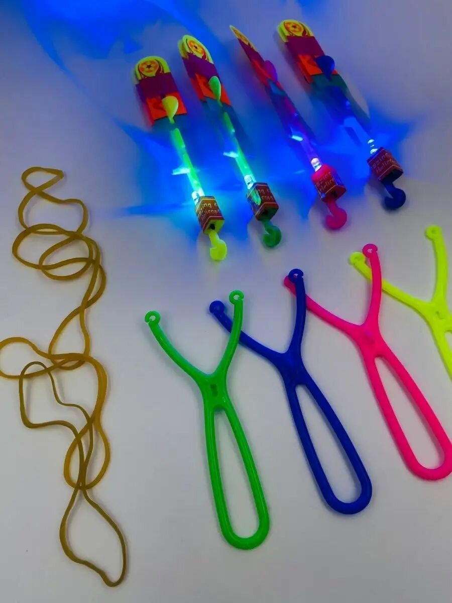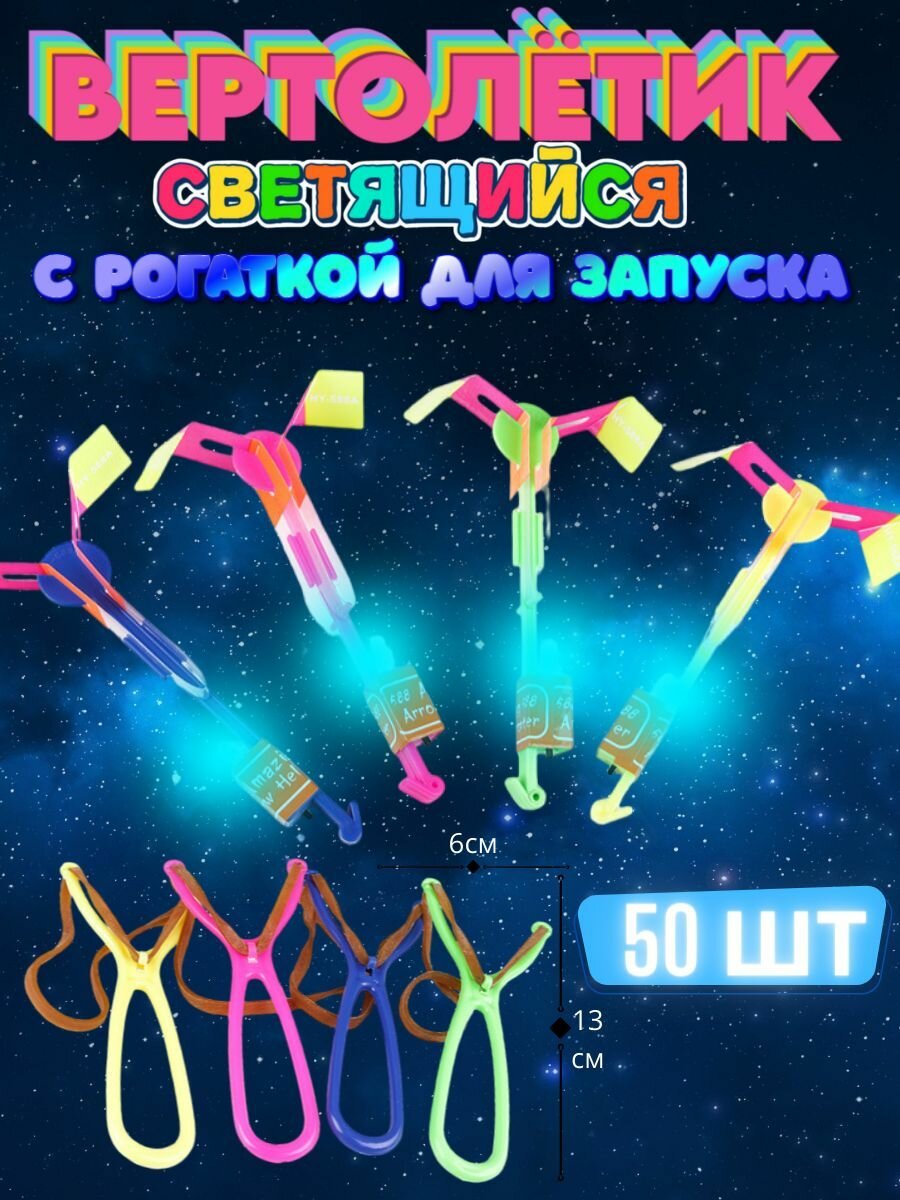 Рогатка вертолет светящийся/Светящийся вертолетик/Вертушка/ набор 50 штук/ рогатка светодиодная интересное:
