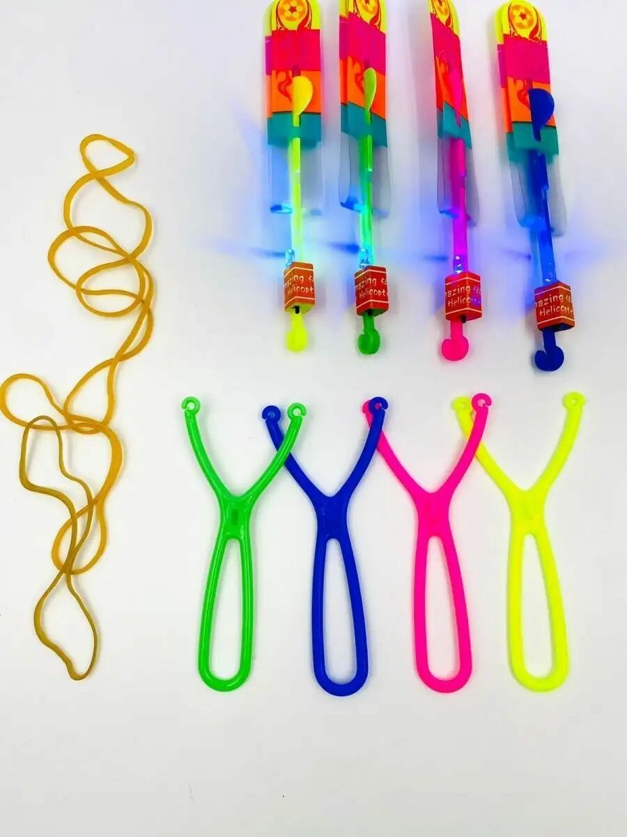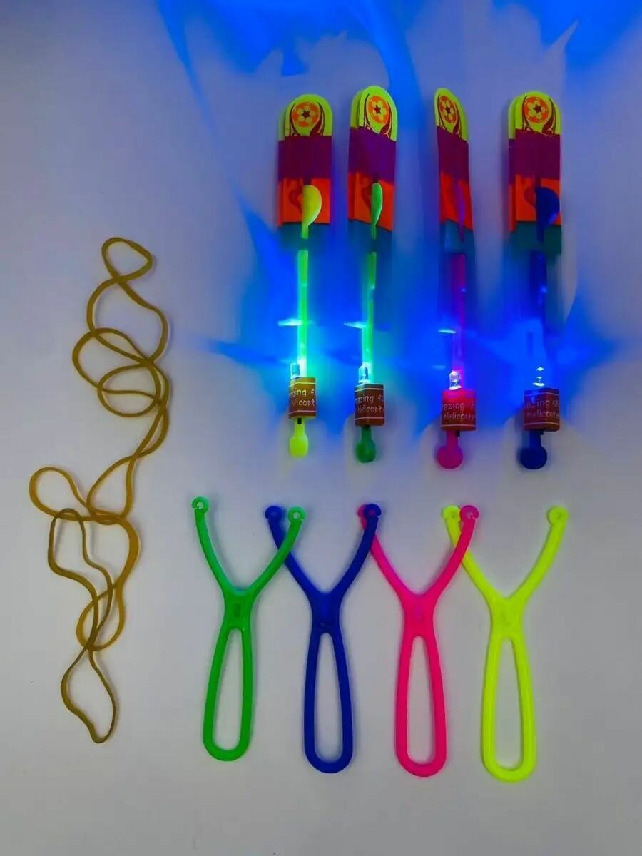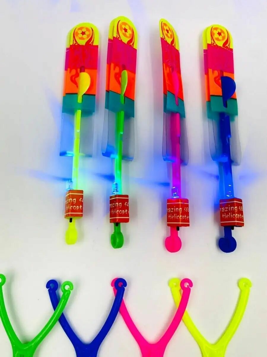 Рогатка вертолет светящийся/Светящийся вертолетик/Вертушка/ набор 4 штук/ рогатка светодиодная