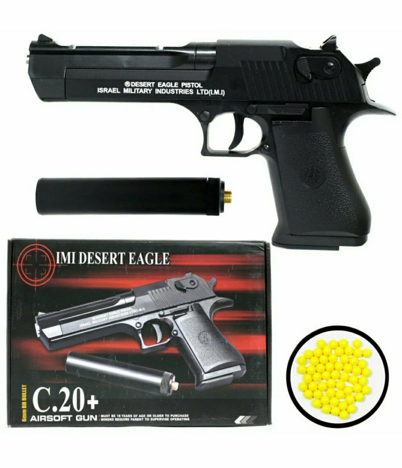 Детский металлический пневматический пистолет Desert Eagle с глушителем Airsoft Gun C.20+ интересное: