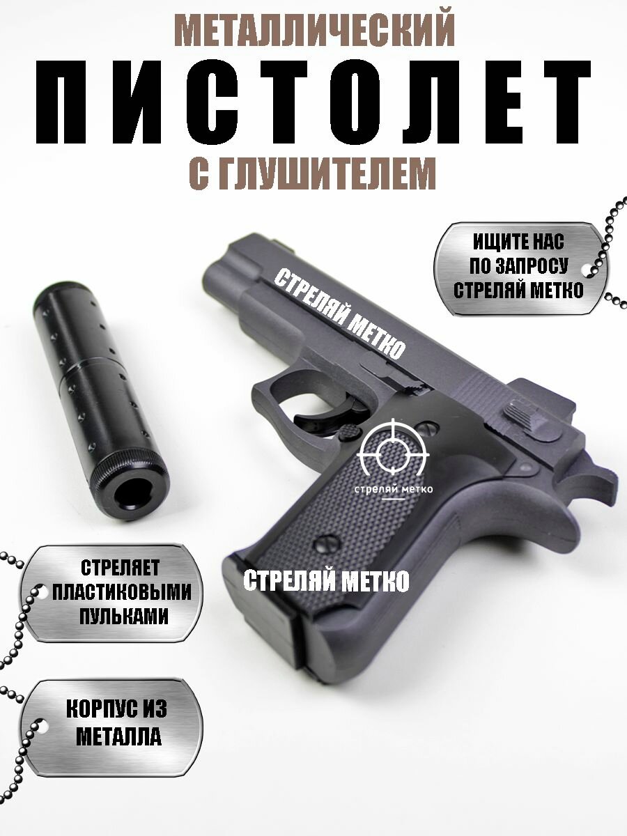 Детский металлический пистолет c пульками 6 мм. Детское железное оружие. Подарок для мальчика. интересное: