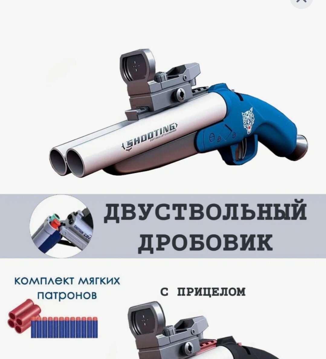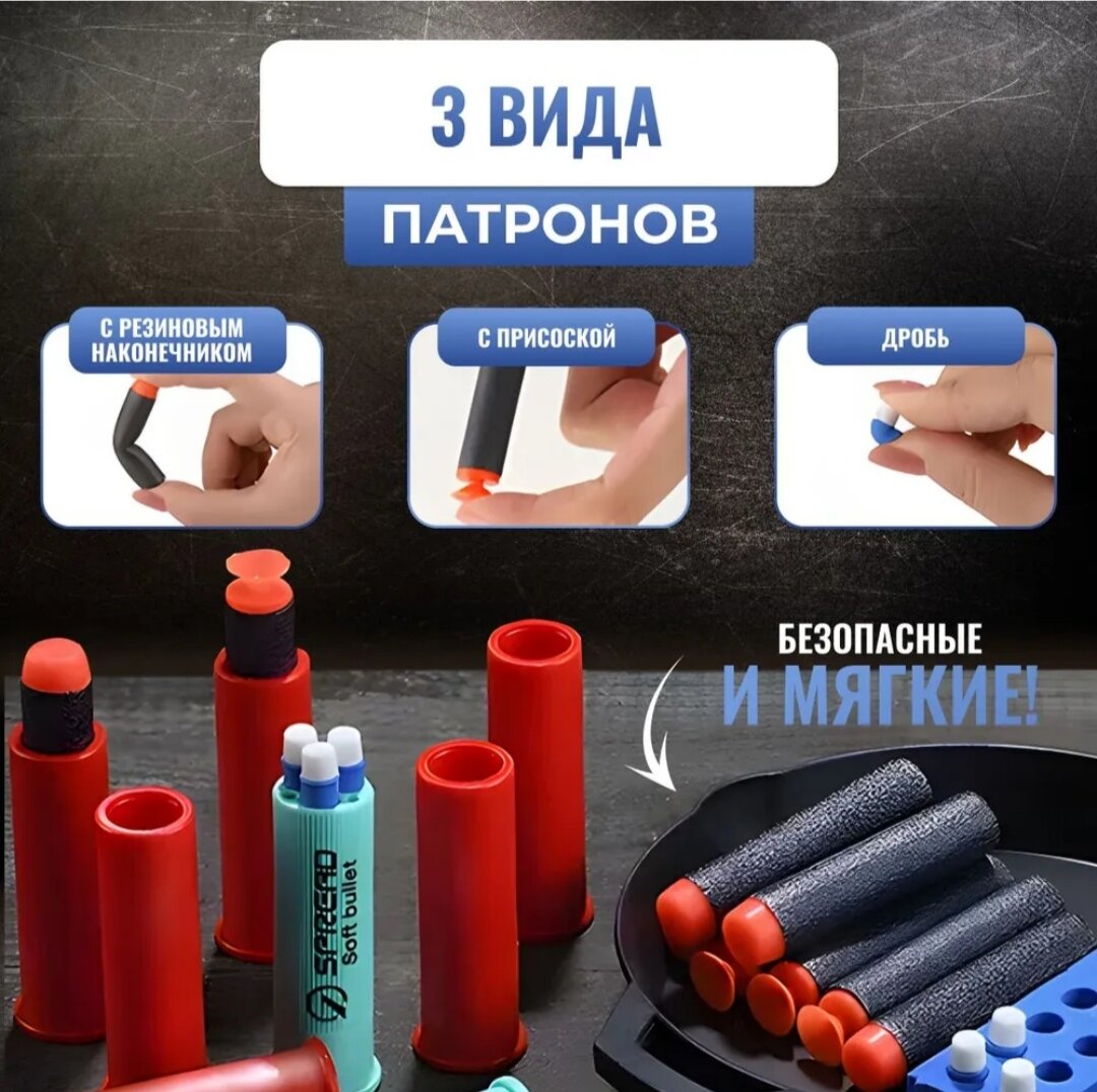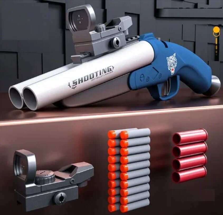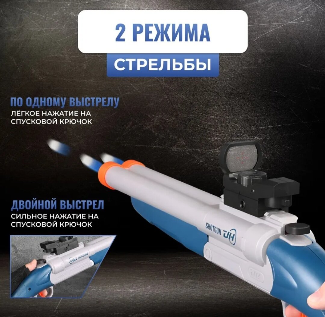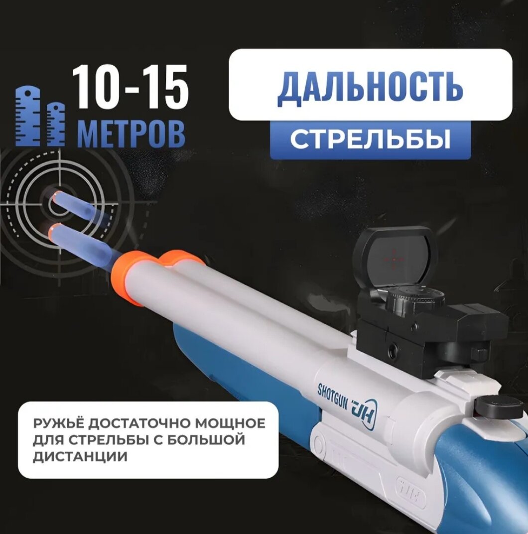 Оружие игрушечное / пистолет бластер ( дробовик ) с прицелом, выбросом гильз и комплектом мягких патронов / синий интересное: