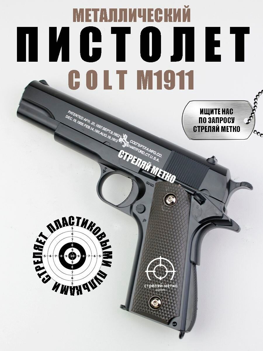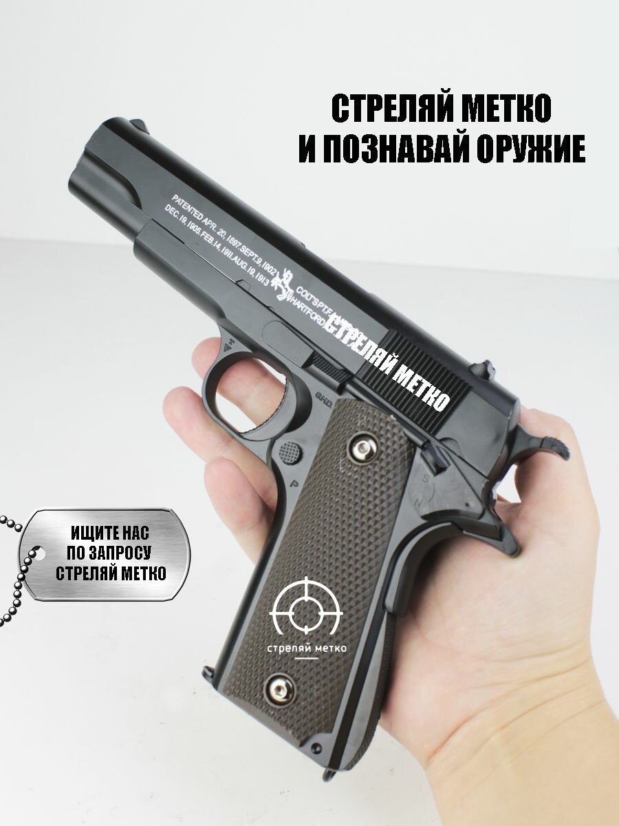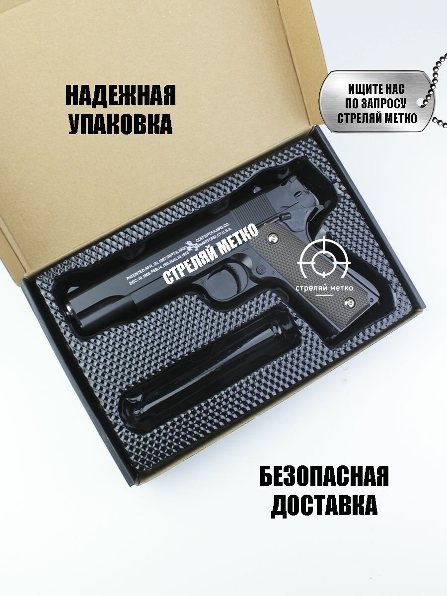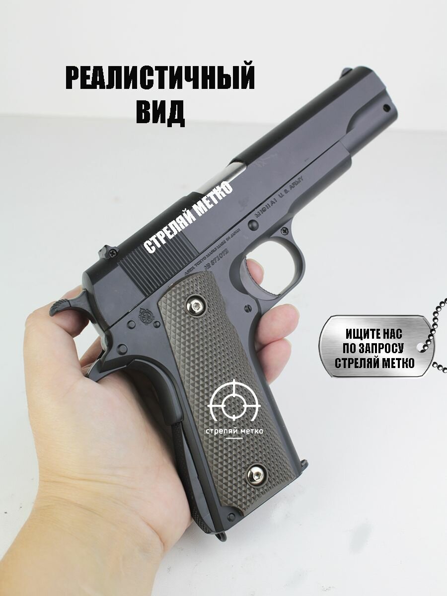Спринговый детский пистолет с пульками железный Colt M1911 игрушечный металлический интересное: