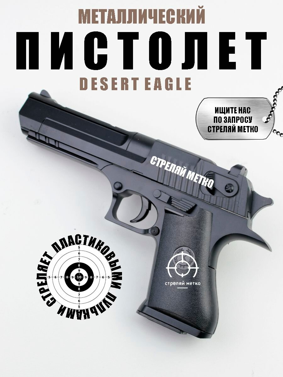 Спринговый металлический пистолет с пульками 6мм Desert Eagle gold железный на пульках