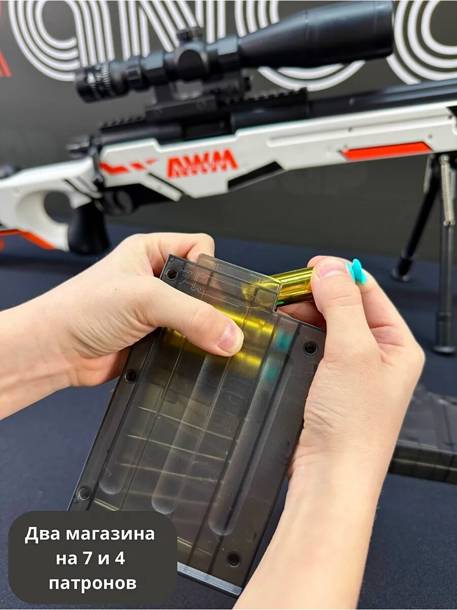 | Эффекты | Болтовая снайперская винтовка уникального цвета / Вылетают гильзы при перезарядке как у настоящей винтовки / Имитирует звук реального выстрела |