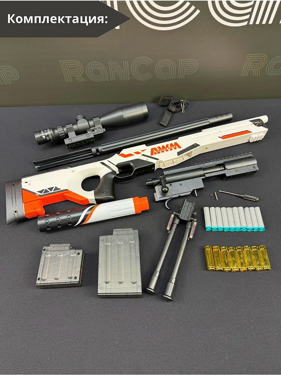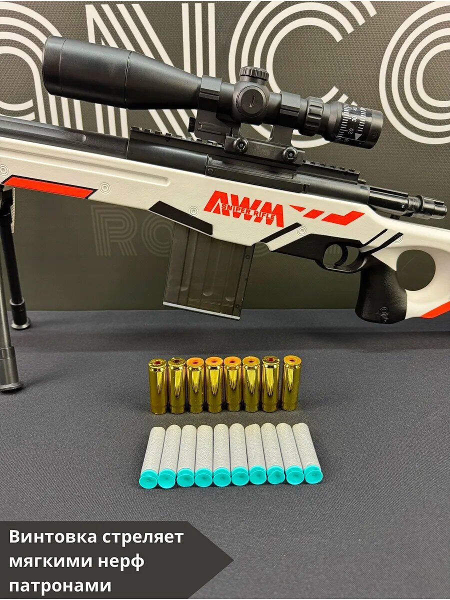 Снайперская винтовка AWM с лазерным/оптическим прицелом, гильзы и нерф патроны 125 см