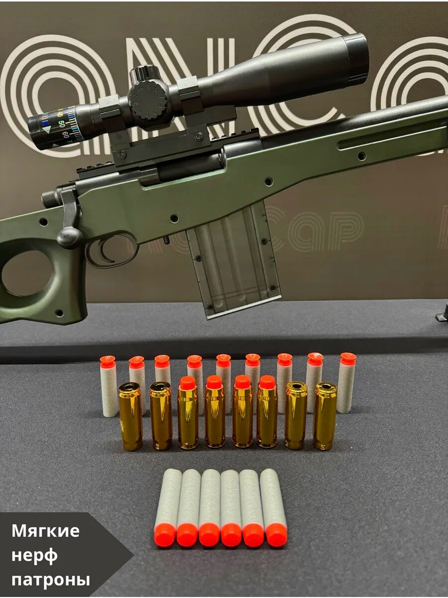 Снайперская винтовка AWM с лазерным/оптическим прицелом, гильзы и нерф патроны 125 см