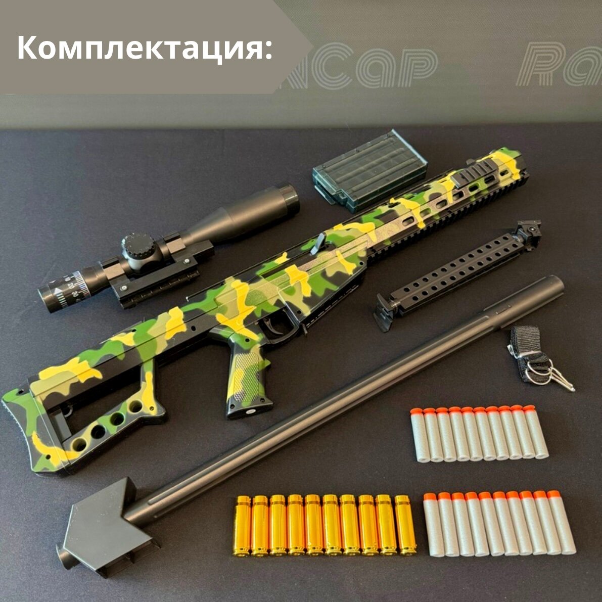 | Эффекты | Болтовая снайперская винтовка уникального цвета / Вылетают гильзы при перезарядке как у настоящей винтовки / Имитирует звук реального выстрела |