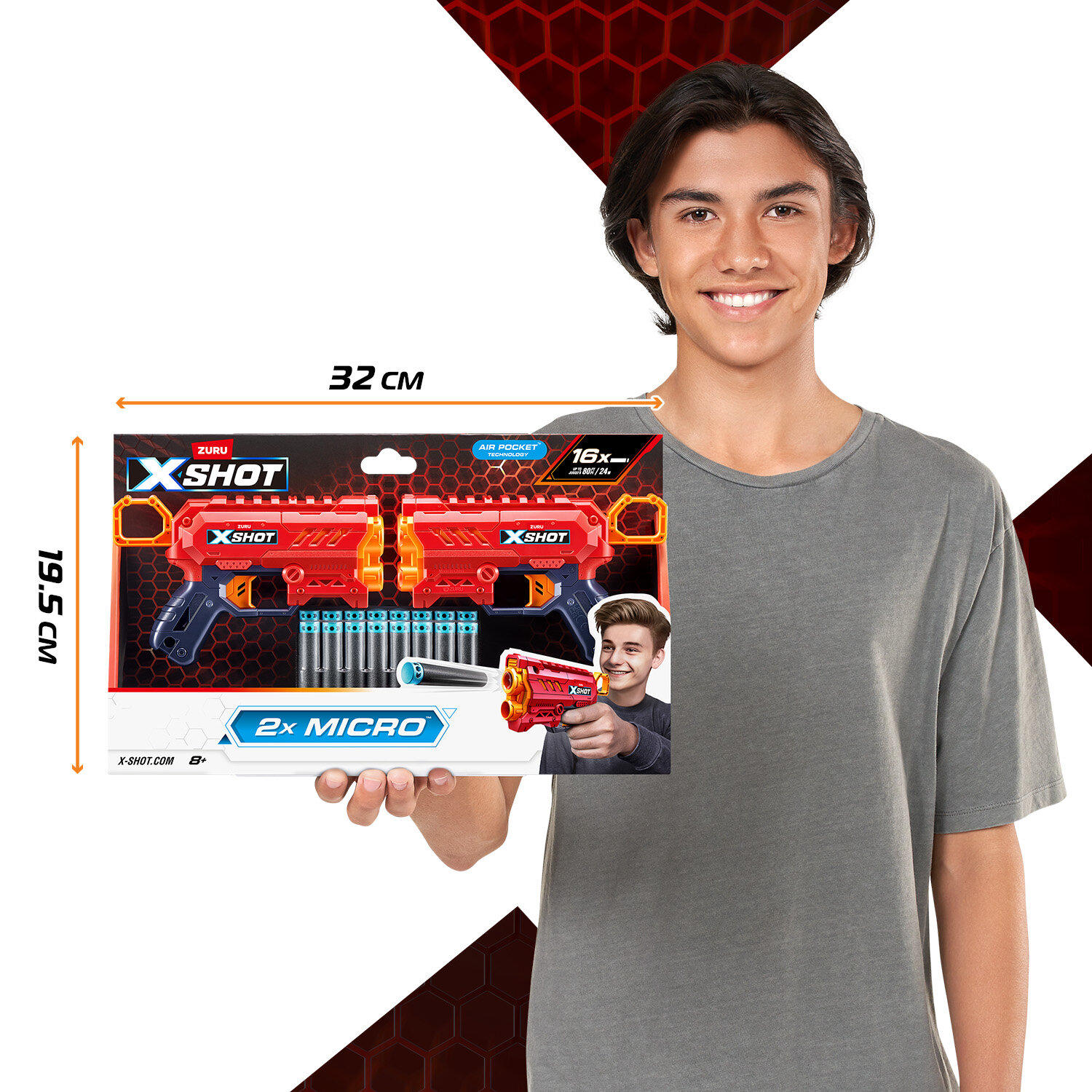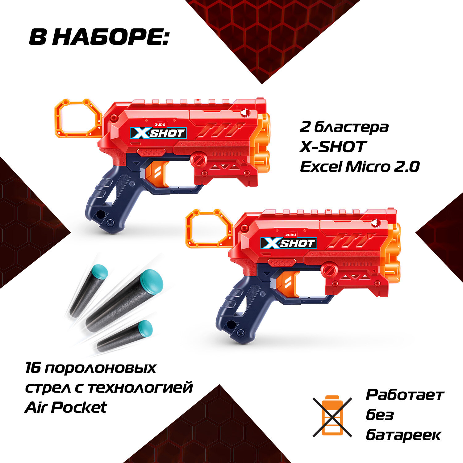 Купить 2 игрушечных пистолета Excel Micro 2.0 Икс Шот Zuru, 16 стрел в наборе