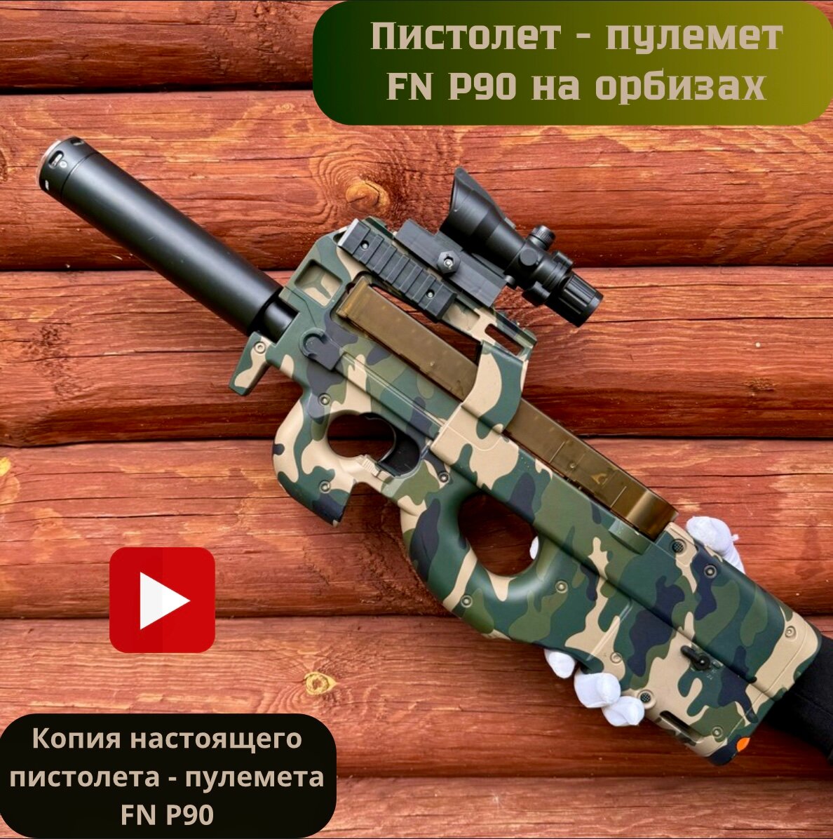 Купить Пистолет-пулемет FN P90 на орбизах. С лазером, оптическим прицелом камуфляжного цвета