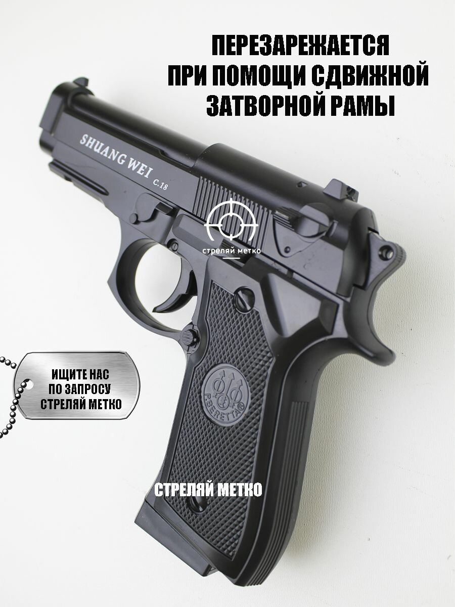 Спринговый пистолет C18 чёрный металлический игрушка для подростков интересное:
