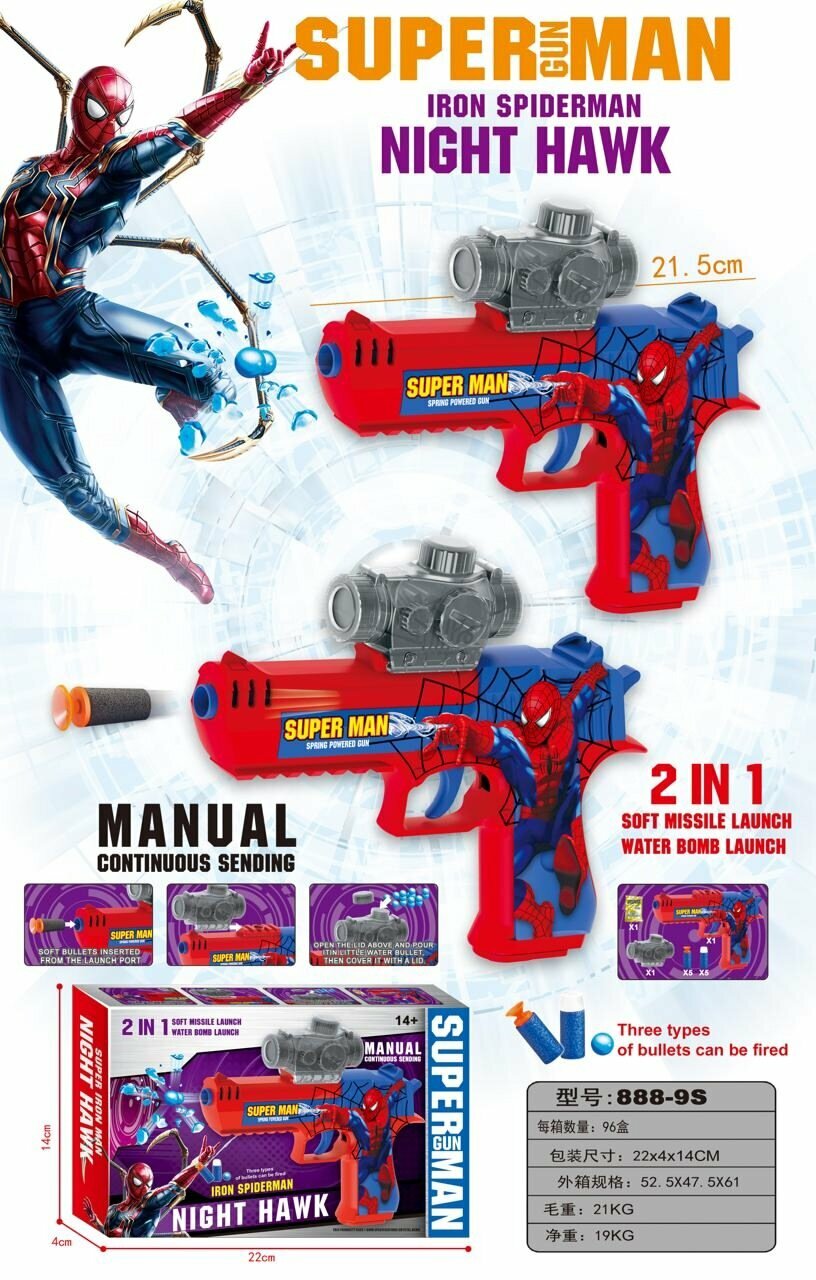 Игровой пистолет HC Toys "Спайдермен", с мягкими пулями, дальность поражения 10м, цвет зеленый интересное: