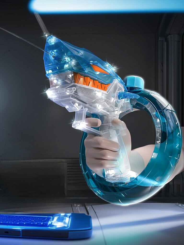 Купить Водный пистолет детский акула электрический на аккумуляторе синий