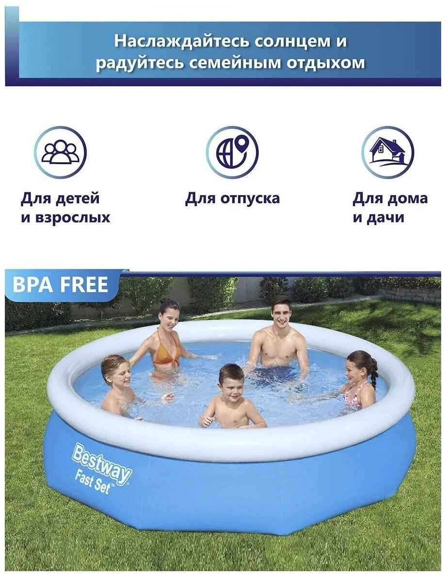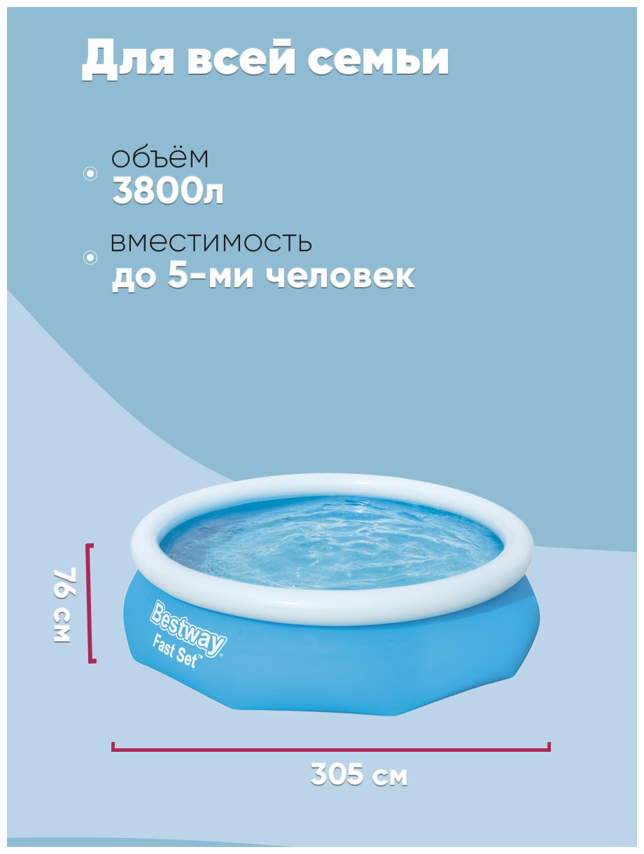 Бассейн Bestway Fast Set 57266, 305х76 см, 305х76 см, 305х305 см интересное: