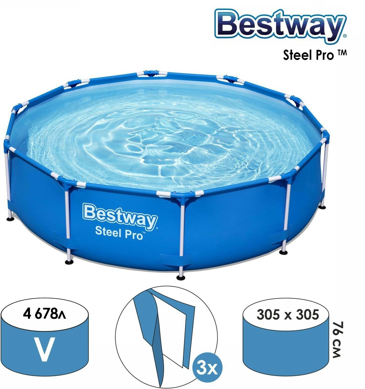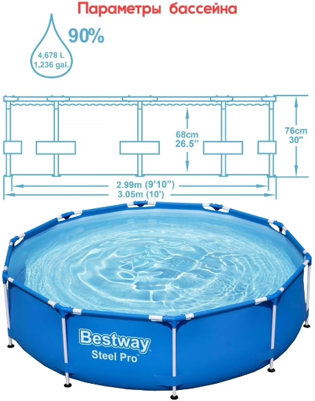 Бассейн Bestway Бассейн Bestway Steel Pro 56677, 305х76 см, 305х76 см, 305х76 см, 305х305 см интересное: