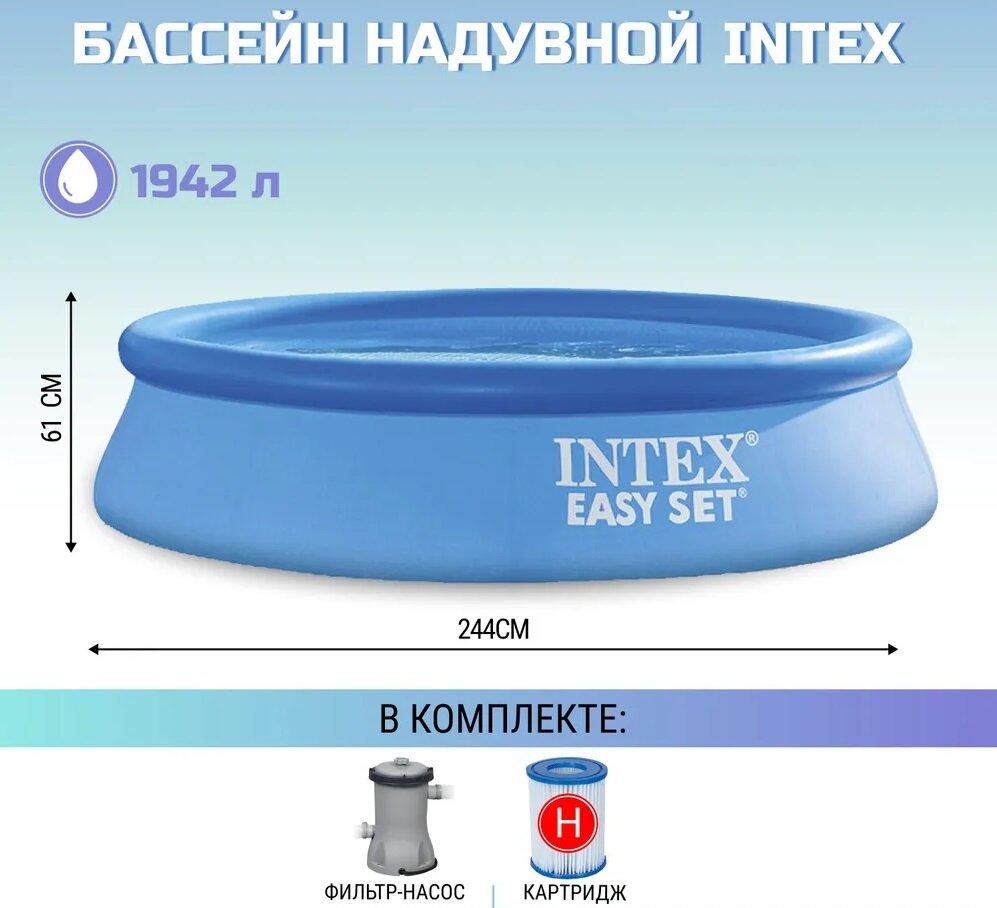 Бассейн надувной Intex Easy Set 244х61см, 1942л, фил.-насос 1250л/ч, 28108 интересное: