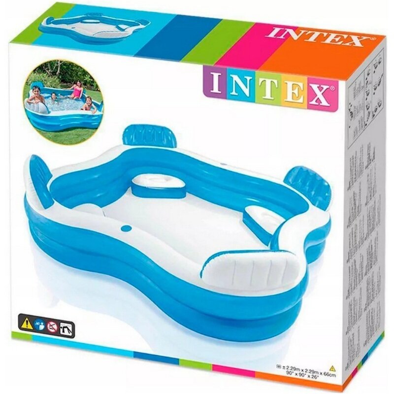 Бассейн надувной Intex 56475, 229x229x66, с сиденьями и подголовниками, голубой интересное: