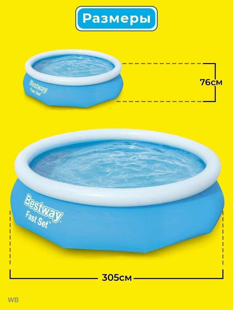 Бассейн надувной взрослый и детский BESTWAY 57266 с водонепроницаемой заплаткой, круглый, игровой, для дачи, 3638 л, 305х76 см, голубой интересное: