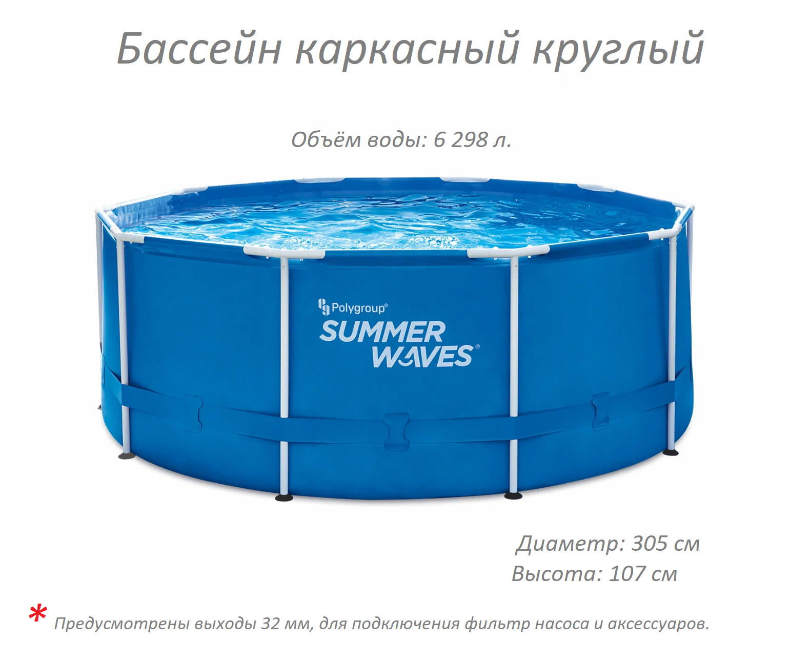 Бассейн каркасный 305 х 107см Summer Waves Р20-1042, круглый интересное: