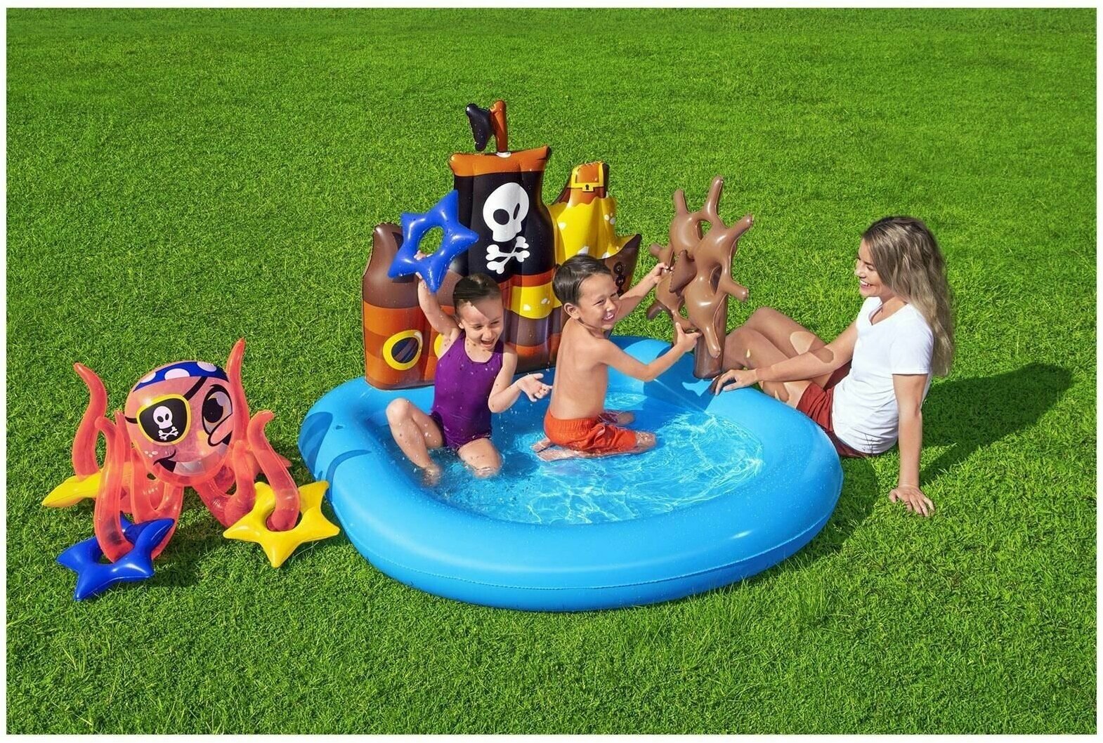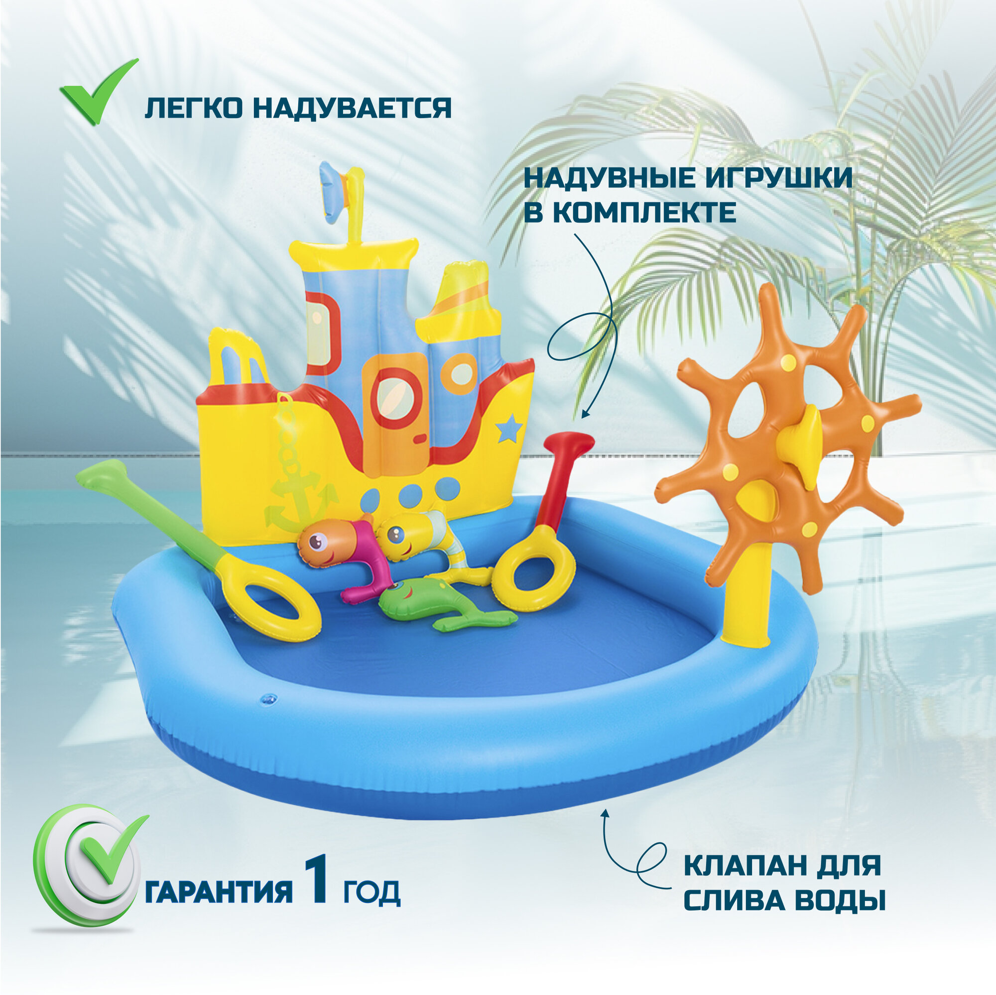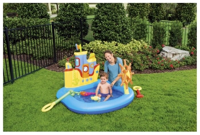 52211 BW, Bestway, Бассейн надувной игровой Кораблик с принадл. для игр, 140х130х104см, 84 л , от 2 лет, уп.6 интересное: