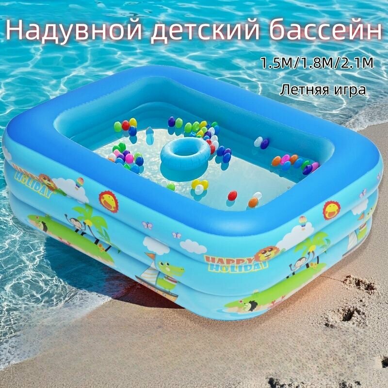 Бассейн, надувной, прямоугольный, детский, ПВХ, для дачи, 1,5-2,1 м