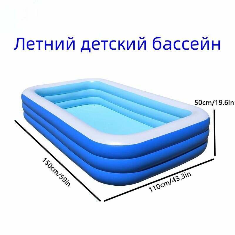 Бассейн, надувной, прямоугольный, детский, ПВХ, для дачи, 1,5-2,1 м