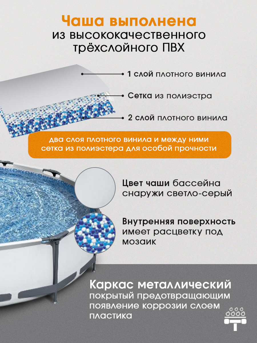 СохранитьБассейн каркасный Steel Pro Max Bestway 366х76 см, 6473 л, в комплекте фильтр-насос интересное: