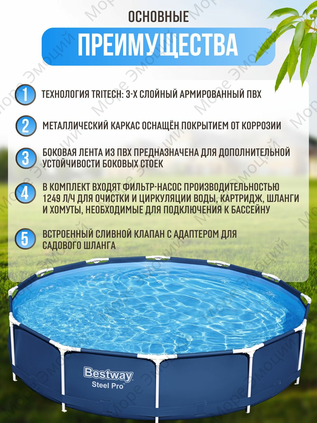 Бассейн каркасный Bestway Steel Pro, 366 х 76 см, с фильтр-насосом, 56681 интересное: