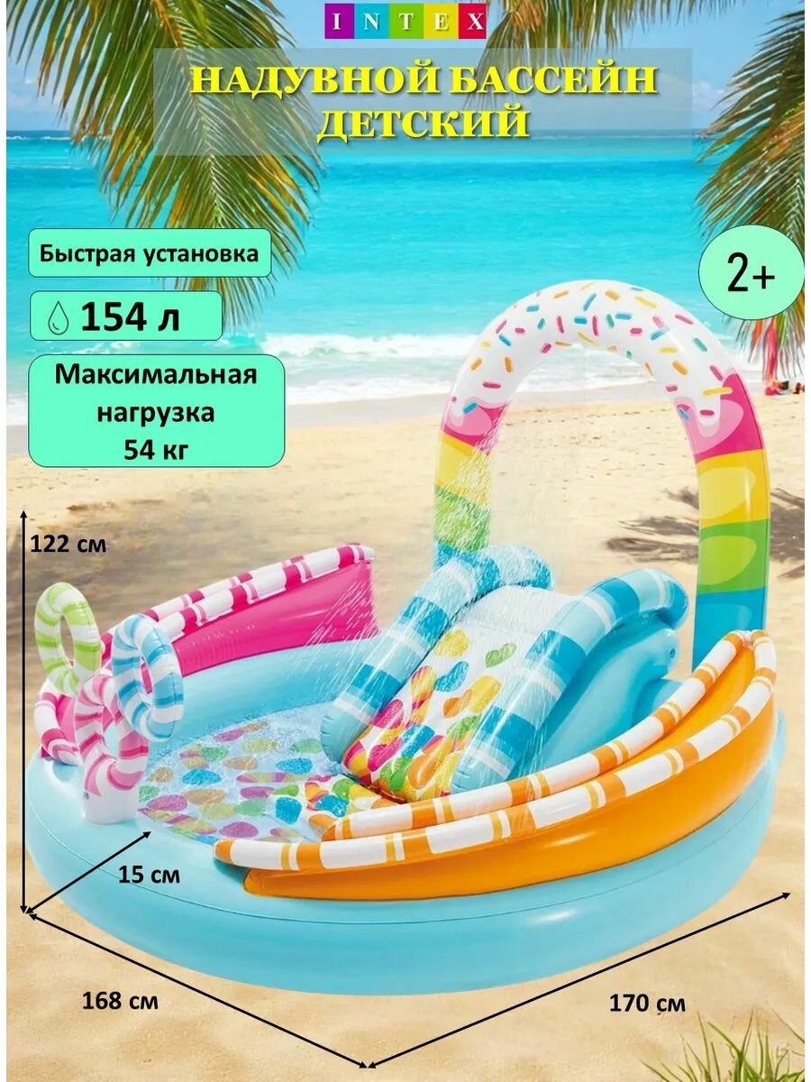 Intex Надувной игровой центр для детей с горкой и игрушками 170х168х122см Сладкая забава, 165л, от 2-х лет 57144NP интересное: