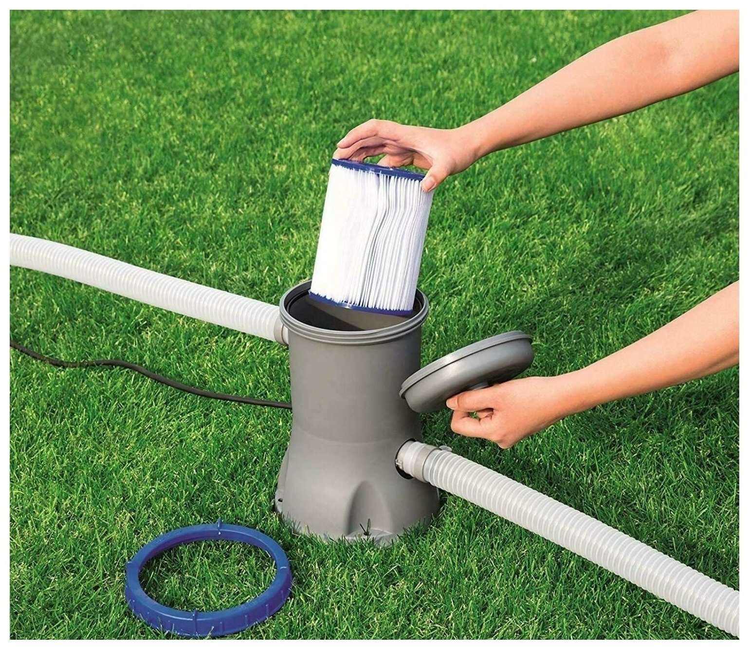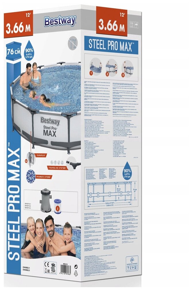 Бассейн Bestway, каркасный, диаметр 3,05 м, фильтр-насос, серый интересное: