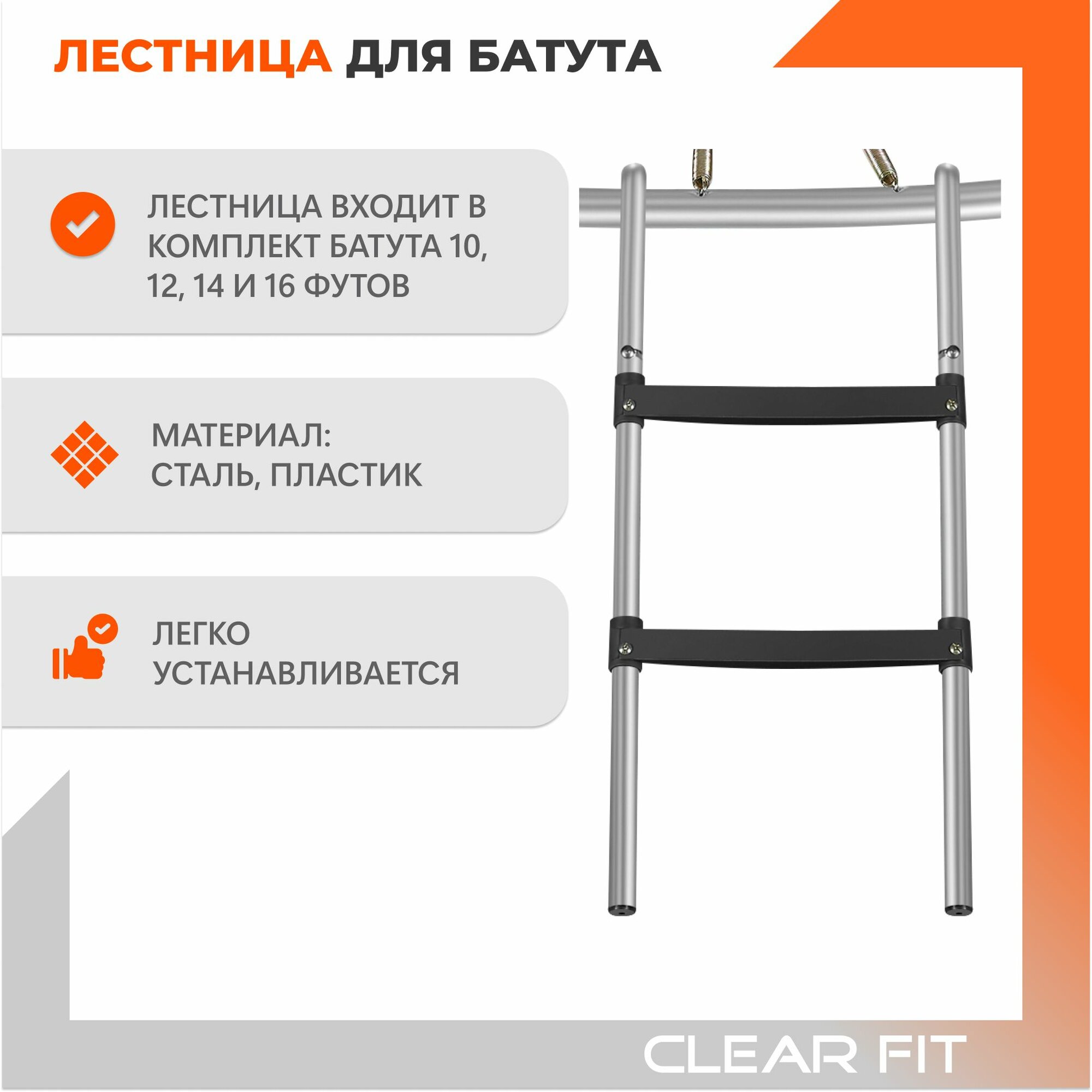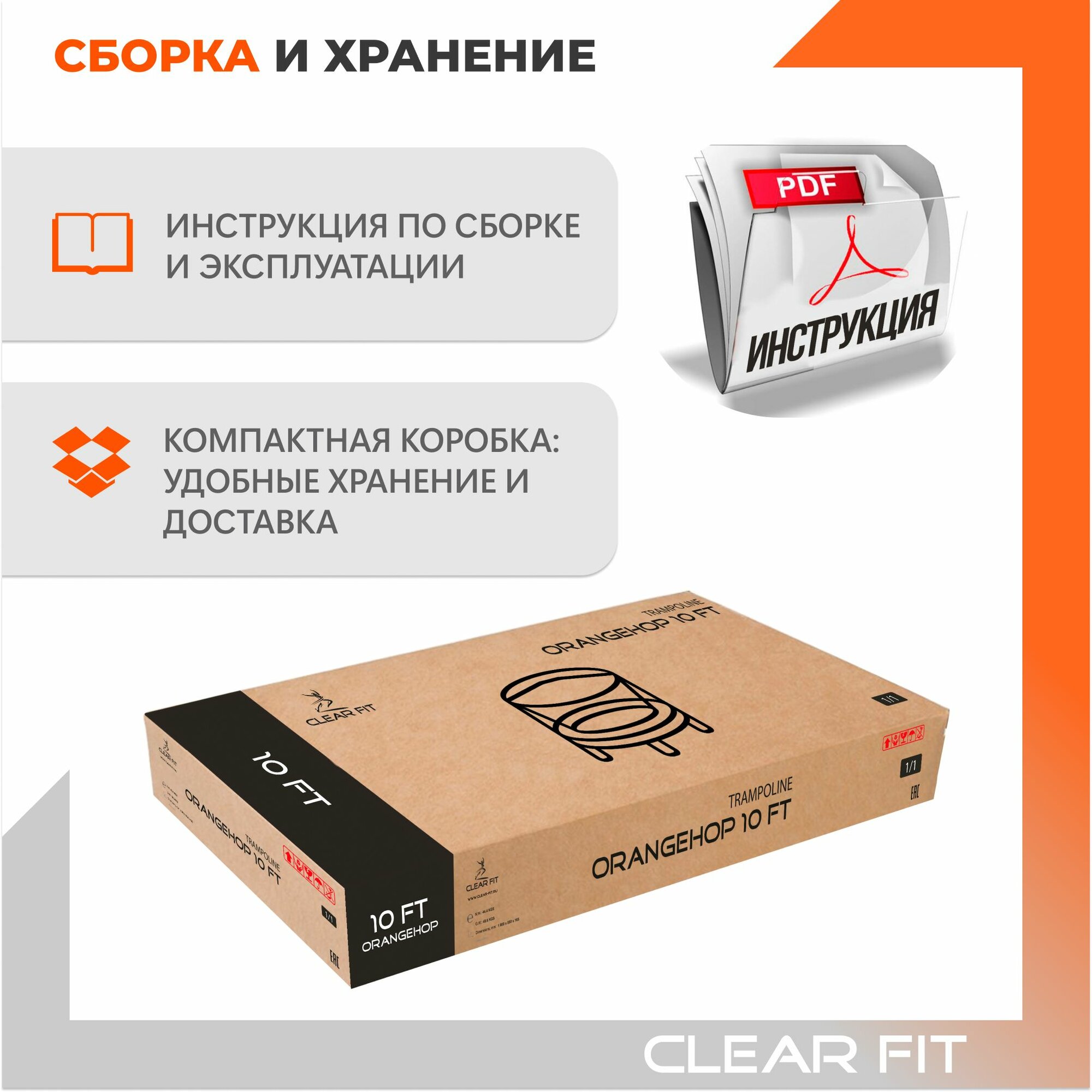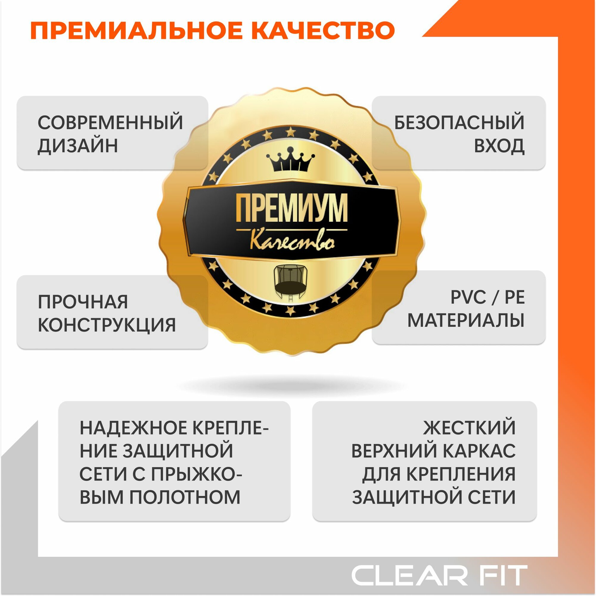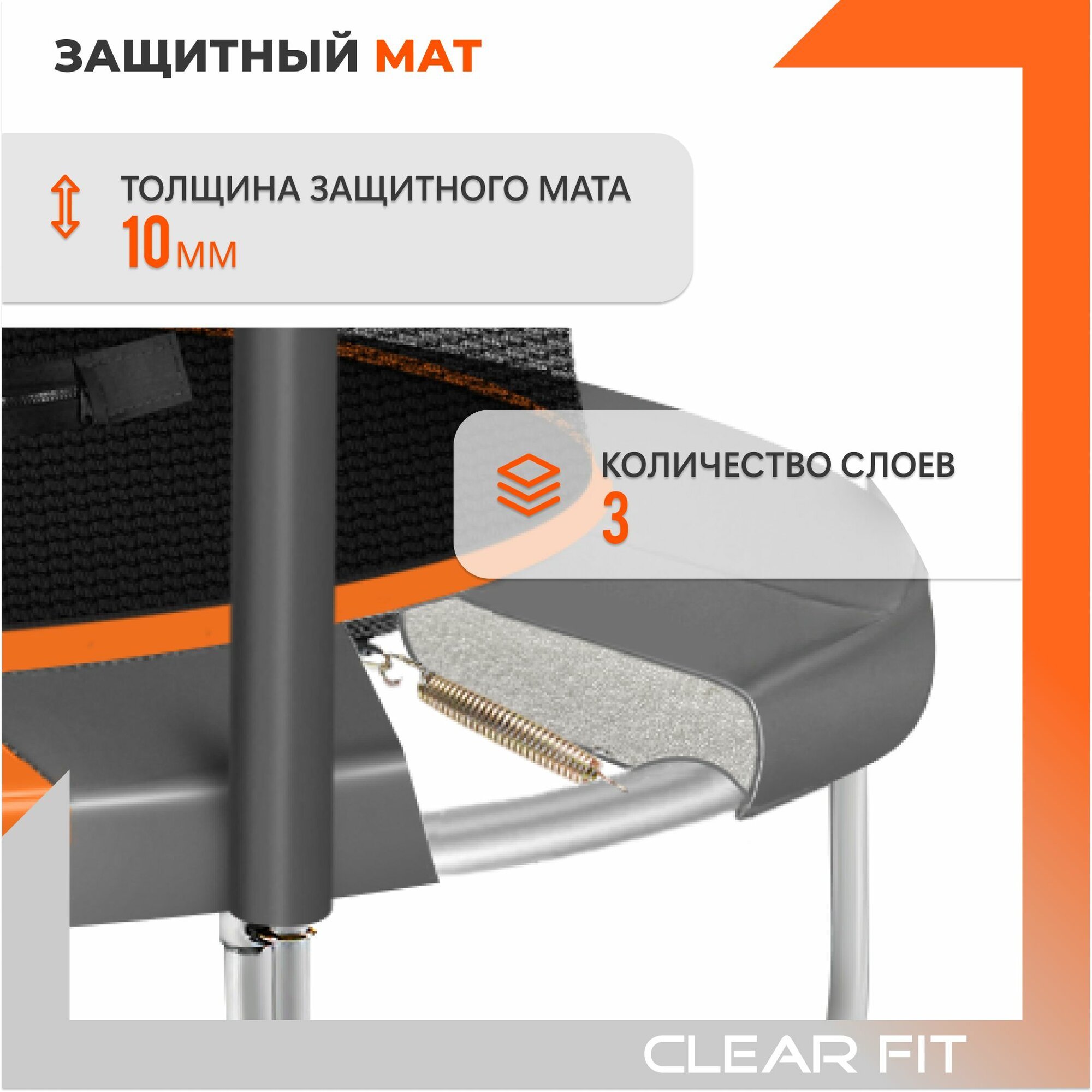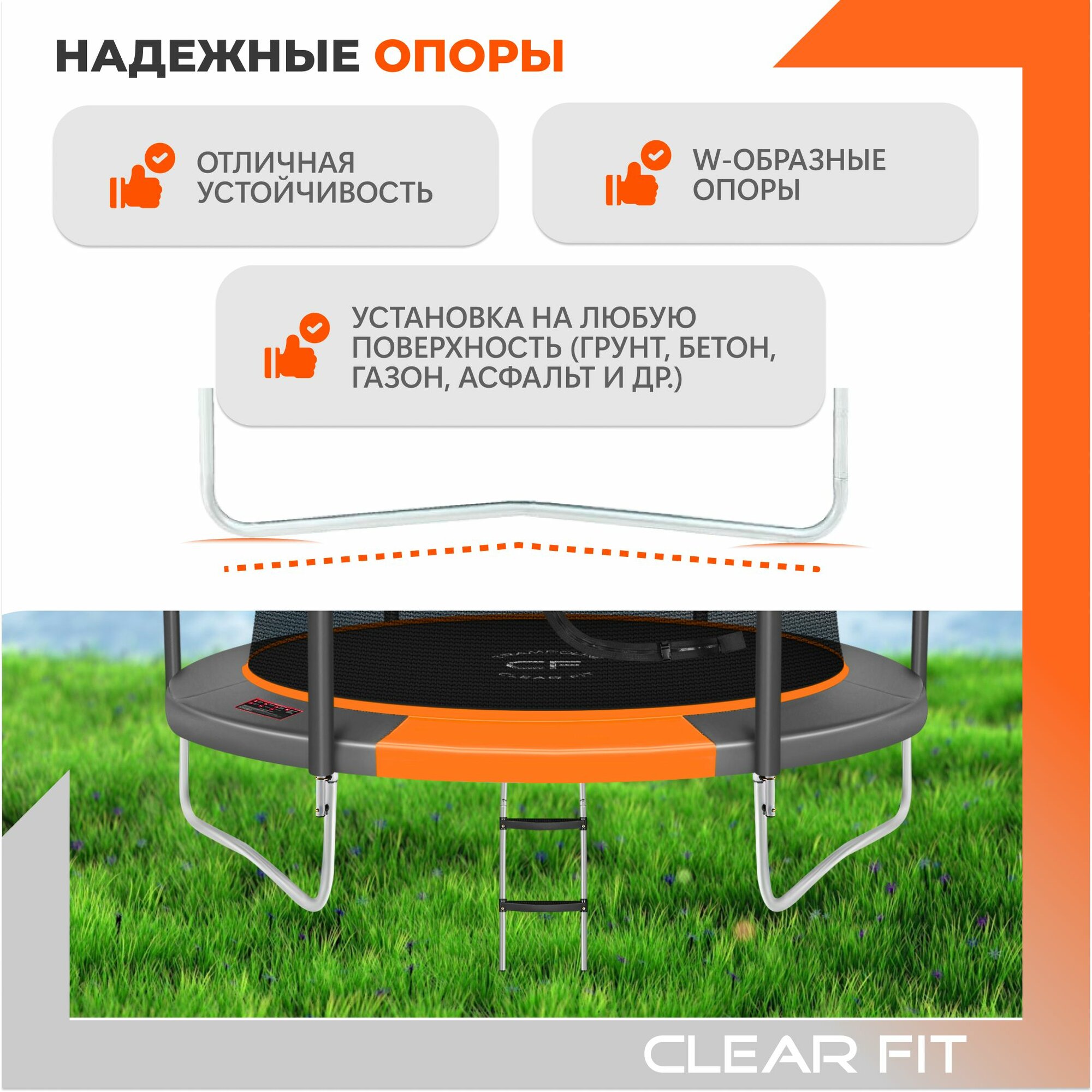 Батут каркасный Clear Fit OrangeHop 10Ft, диаметр 305 см, высота 240 см, до 150 кг интересное:
