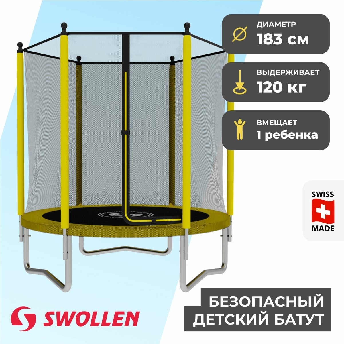 Батут с защитной сеткой SWOLLEN Start Inside ZIP 6 FT (183 см) (Yellow) детский, для детей, уличный, для улицы, для дачи