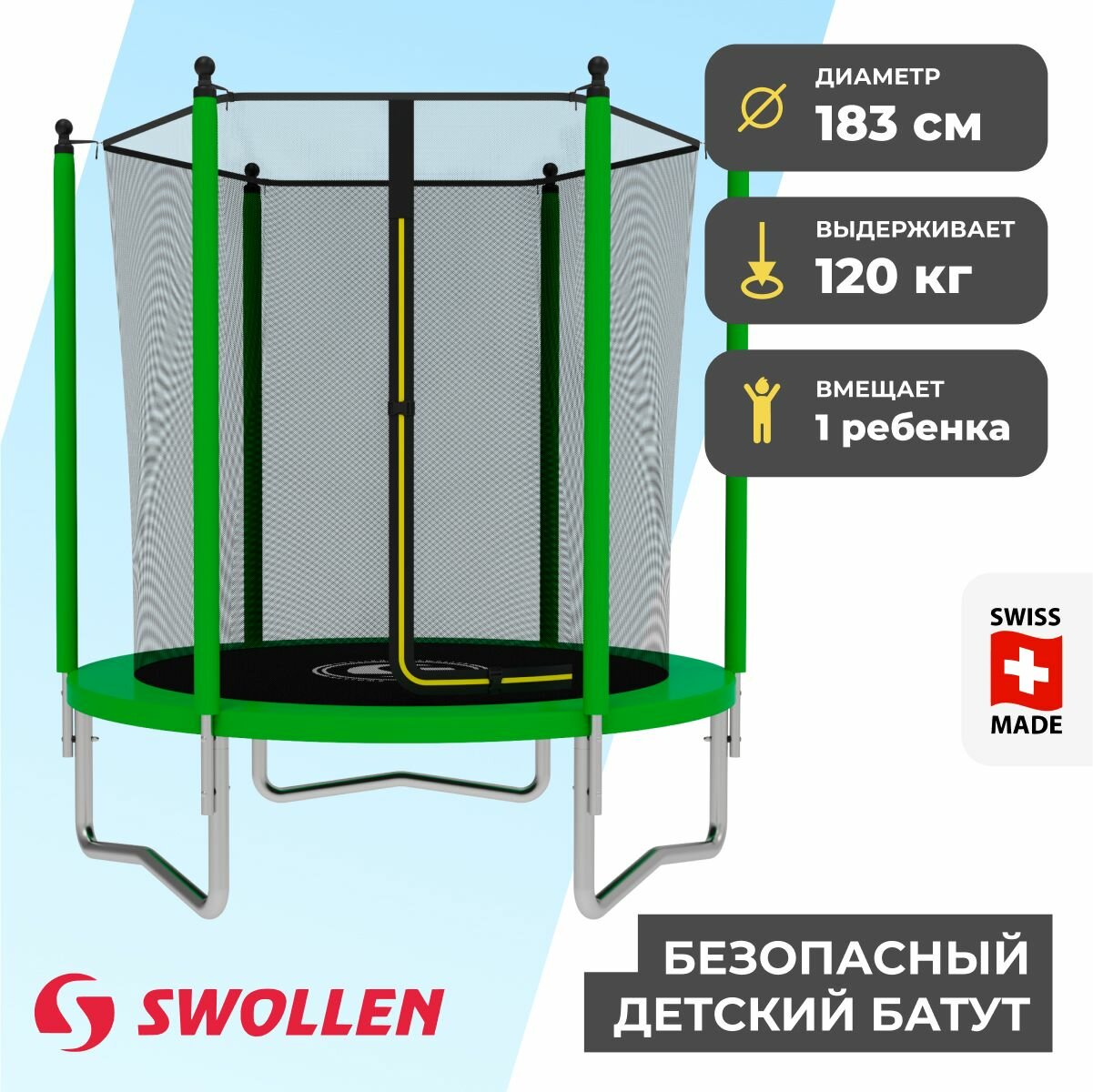 Купить Батут с защитной сеткой SWOLLEN Start Inside ZIP 6 FT (183 см) (Green) детский, для детей, уличный, для улицы, для дачи