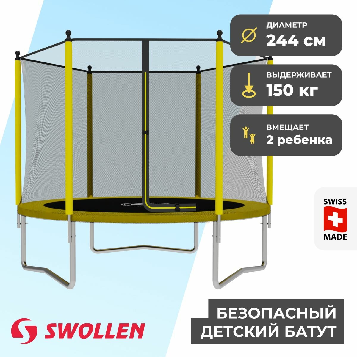 Батут с защитной сеткой SWOLLEN Start Inside ZIP 8 FT (244 см) (Yellow) детский, для детей, уличный, для улицы, для дачи