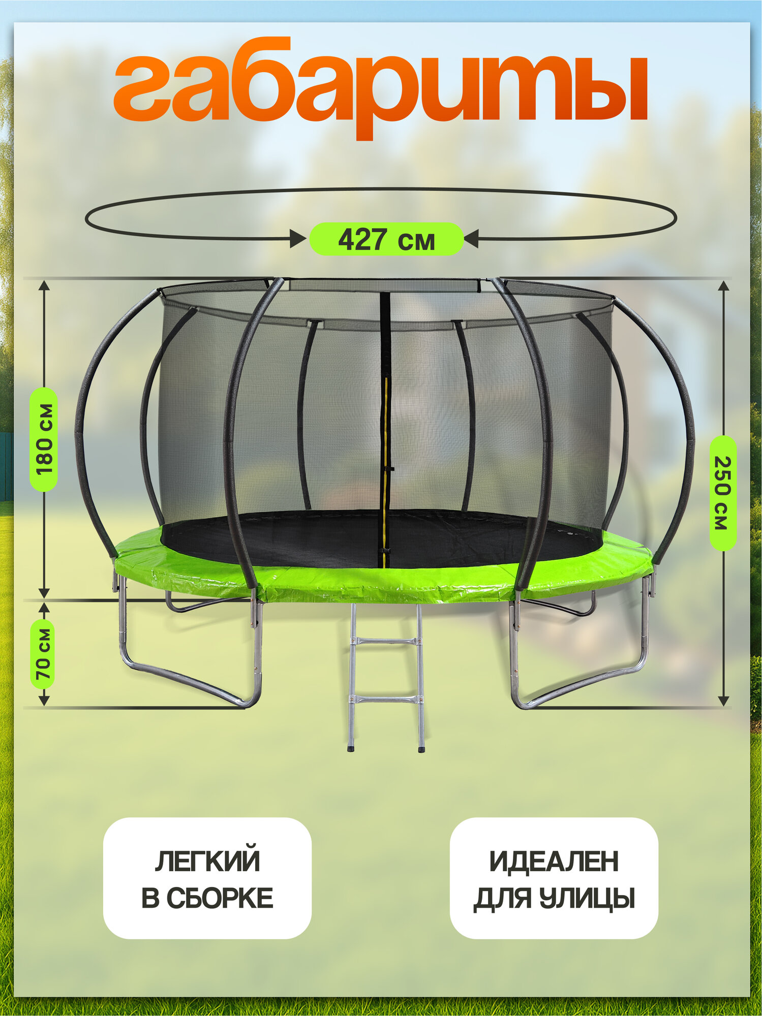 Батут "BIG 14 FT", диаметр 420см, максимальная нагрузка 500кг, с сеткой интересное: