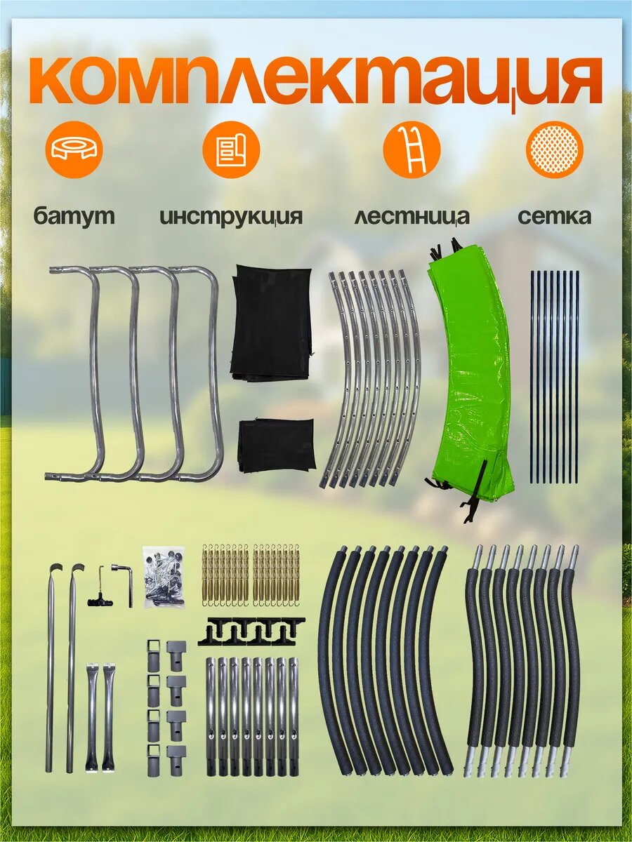 Батут BIG "12FT", с защитой пружин, детский, уличный, максимальная нагрузка 450кг интересное: