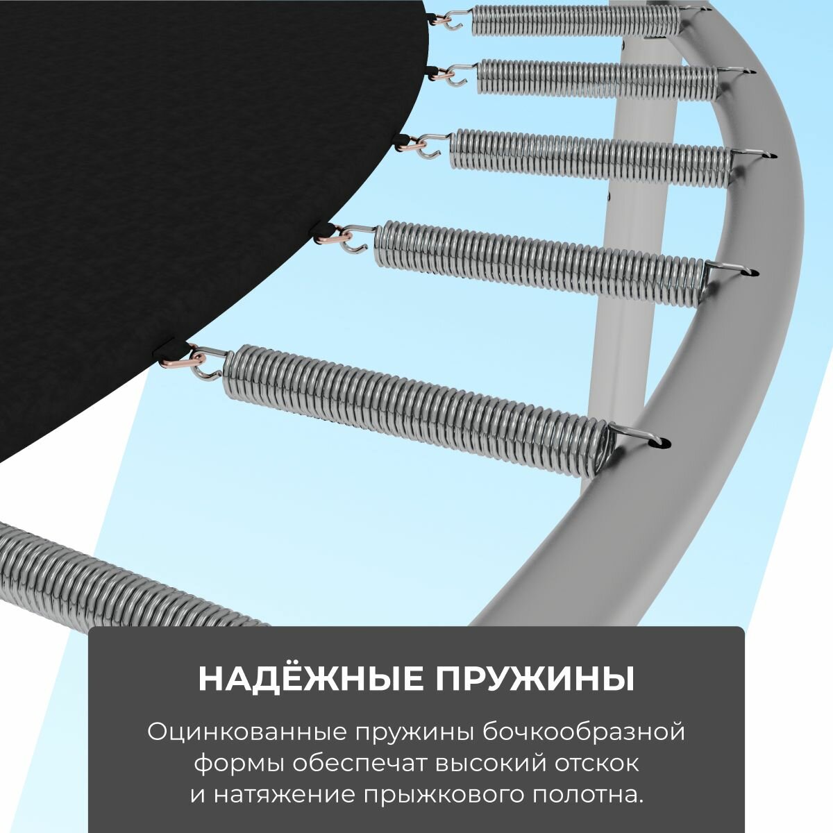 | Состав набора | Батут; Защитный мат; Верхняя защитная сетка; Инструкция по эксплуатации; Гарантийный талон |