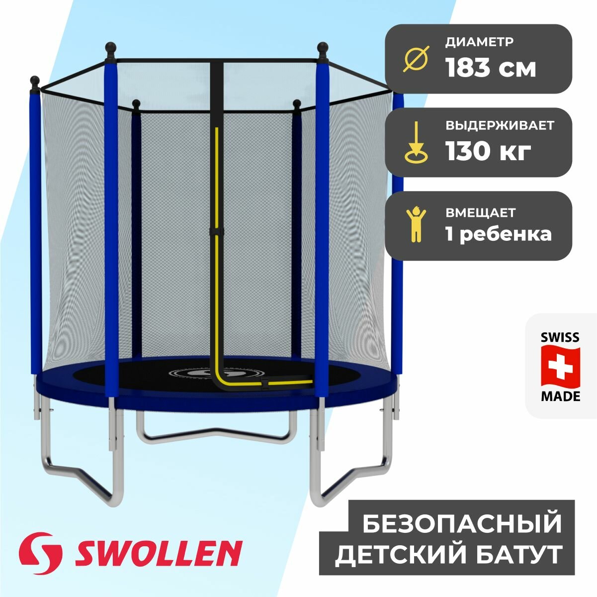 Батут с защитной сеткой SWOLLEN Start Outside ZIP 6 FT (183 см) (Blue) детский, для детей, уличный, для улицы, для дачи