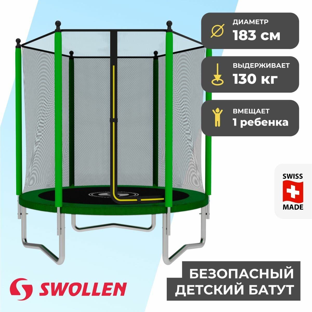 СохранитьБатут с защитной сеткой SWOLLEN Lite Outside ZIP 6 FT (183 см) (Green) детский, для детей, уличный, для улицы, для дачи интересное:
