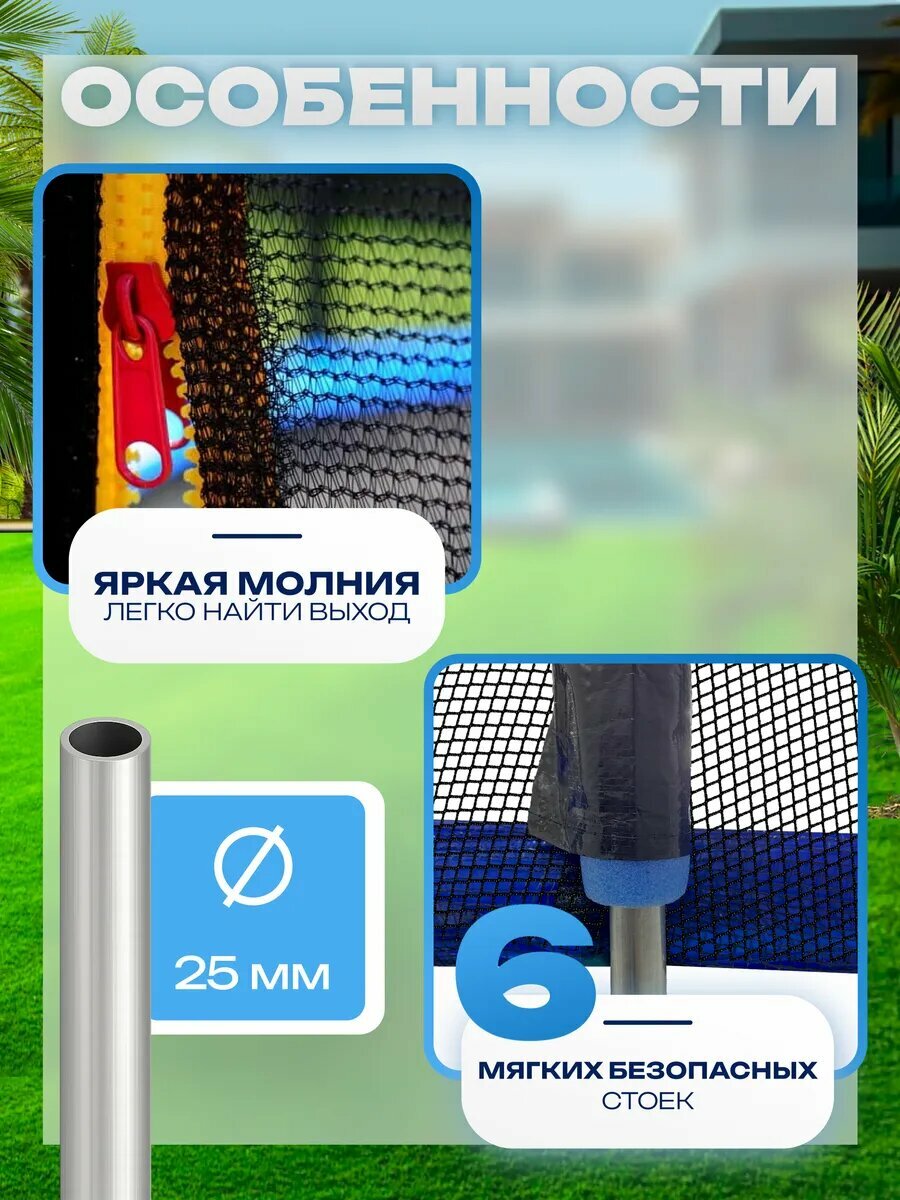 | Состав набора | защитная сетка; защитный кожух; металлическое основание; прыжковое полотно; упаковка |