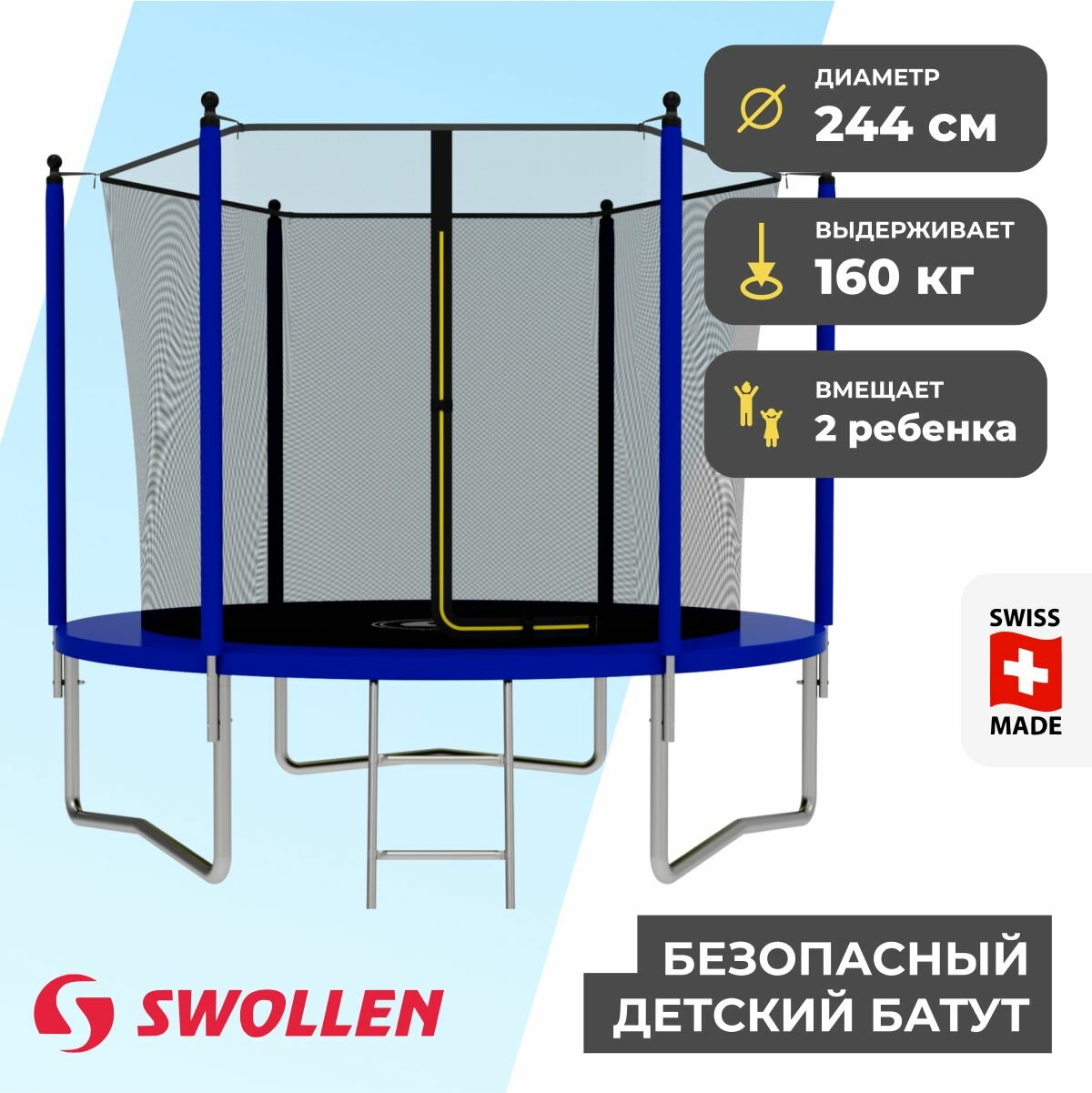 Батут с защитной сеткой SWOLLEN Lite Inside ZIP 8 FT (244 см) (Blue) детский, для детей, уличный, для улицы, для дачи интересное: