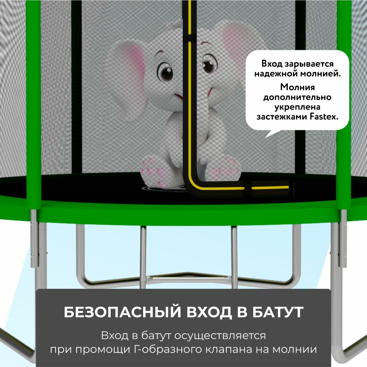 Батут с защитной сеткой SWOLLEN Lite Inside ZIP 8 FT (244 см) (Green) детский, для детей, уличный, для улицы, для дачи интересное: