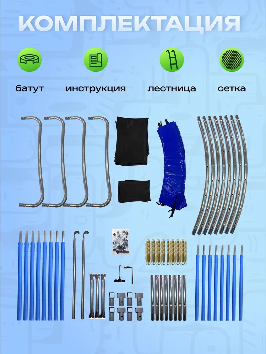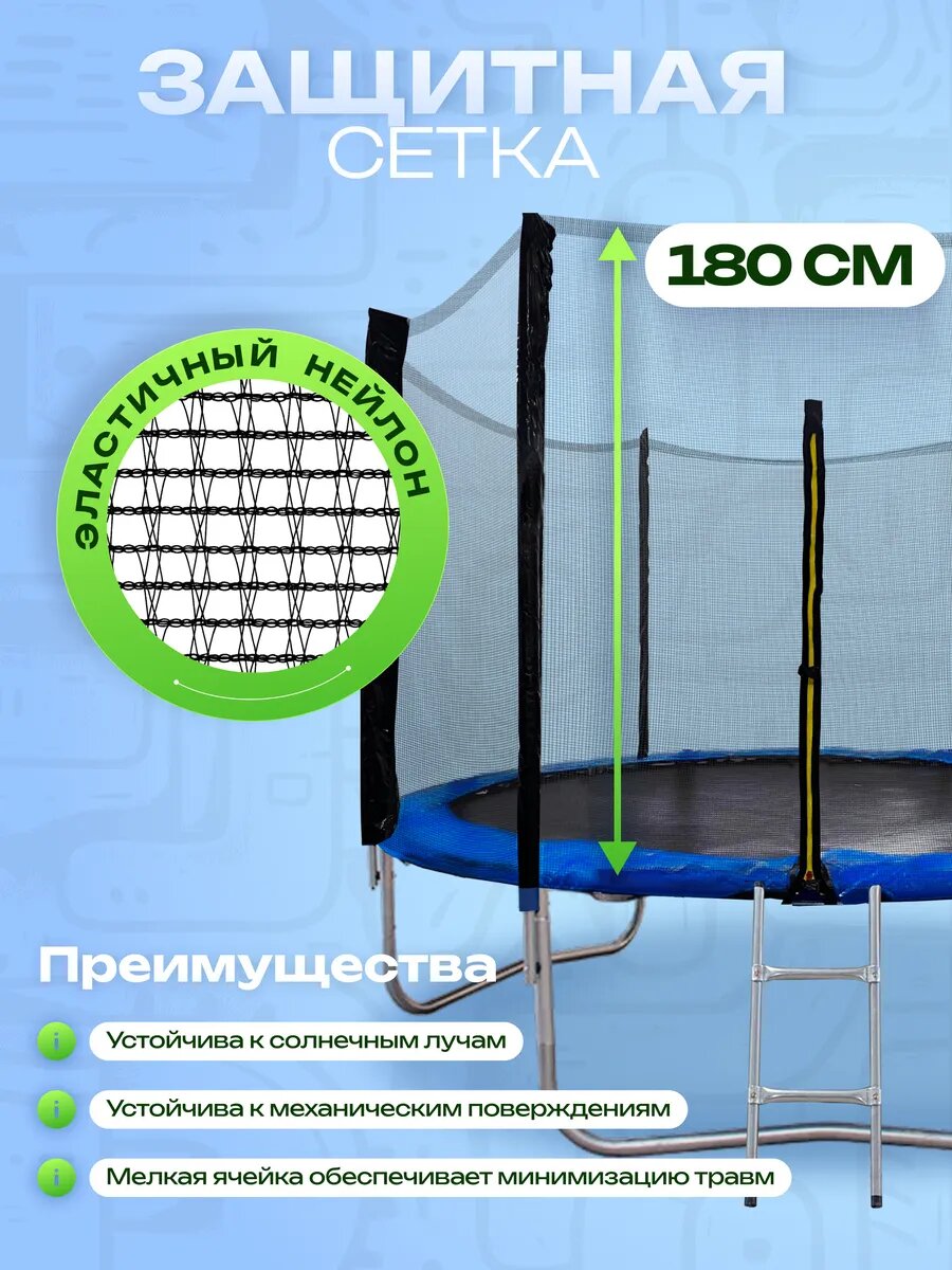 Батут для дома, для дачи, с сеткой, синий, 12 футов, максимальная нагрузка 450кг интересное: