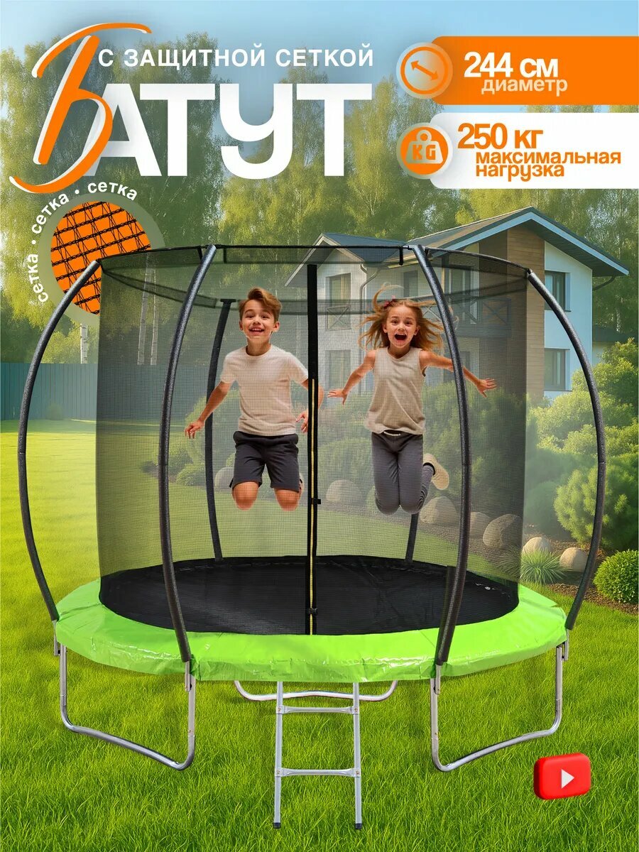 Батут каркасный детский с защитной сеткой уличный, для дачи, 244см интересное: