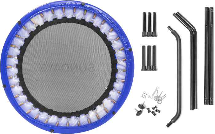 | Состав набора | Детский батут с ручкой - 1 шт: стальной каркас, 34 пружины, защитный мат, ткань для прыжков, 6 обрезиненных ножек. |