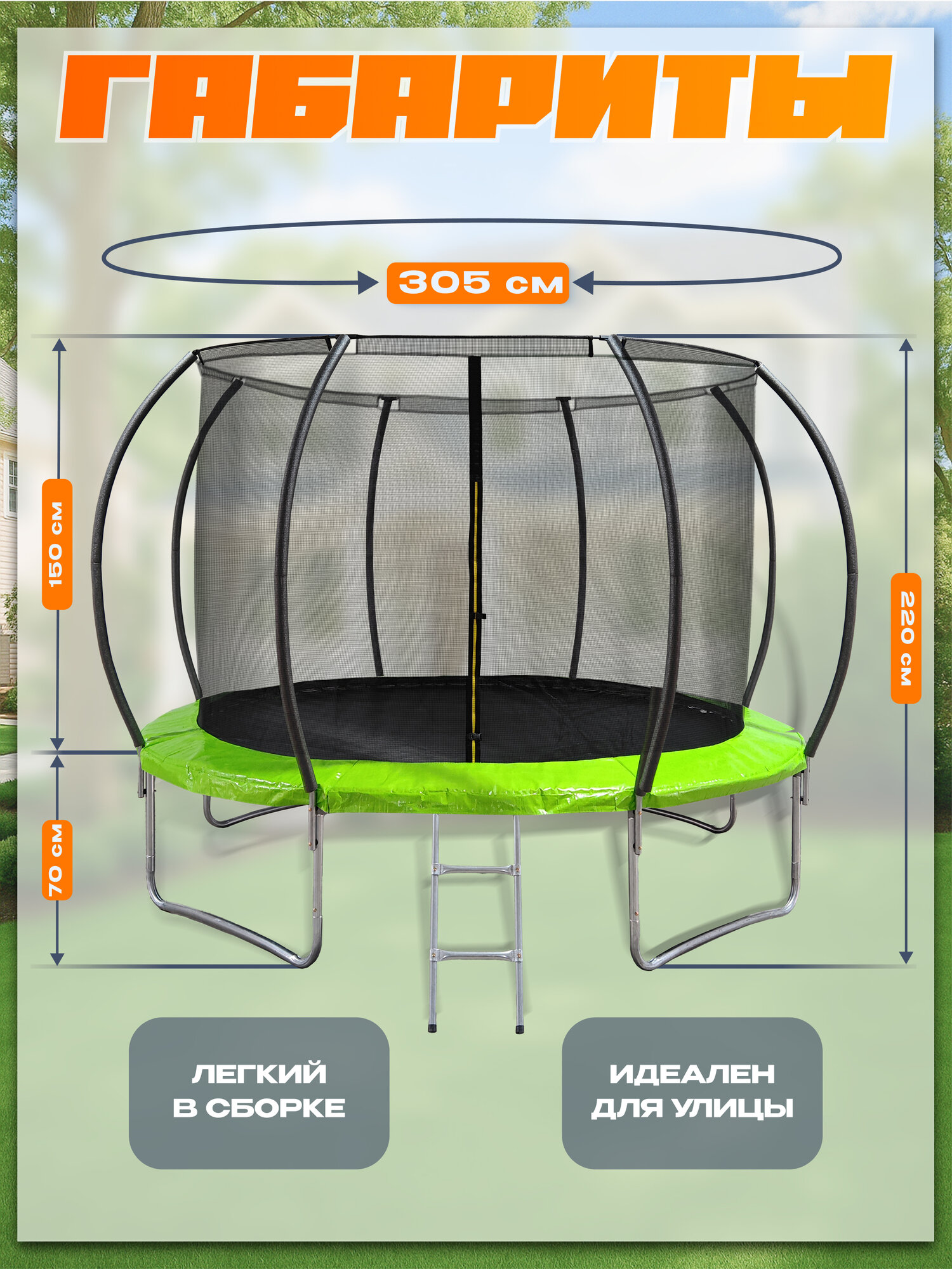 Купить Батут "BIG 10FT", детский, уличный, каркасный, с сеткой, до 350кг, 305х220х70см