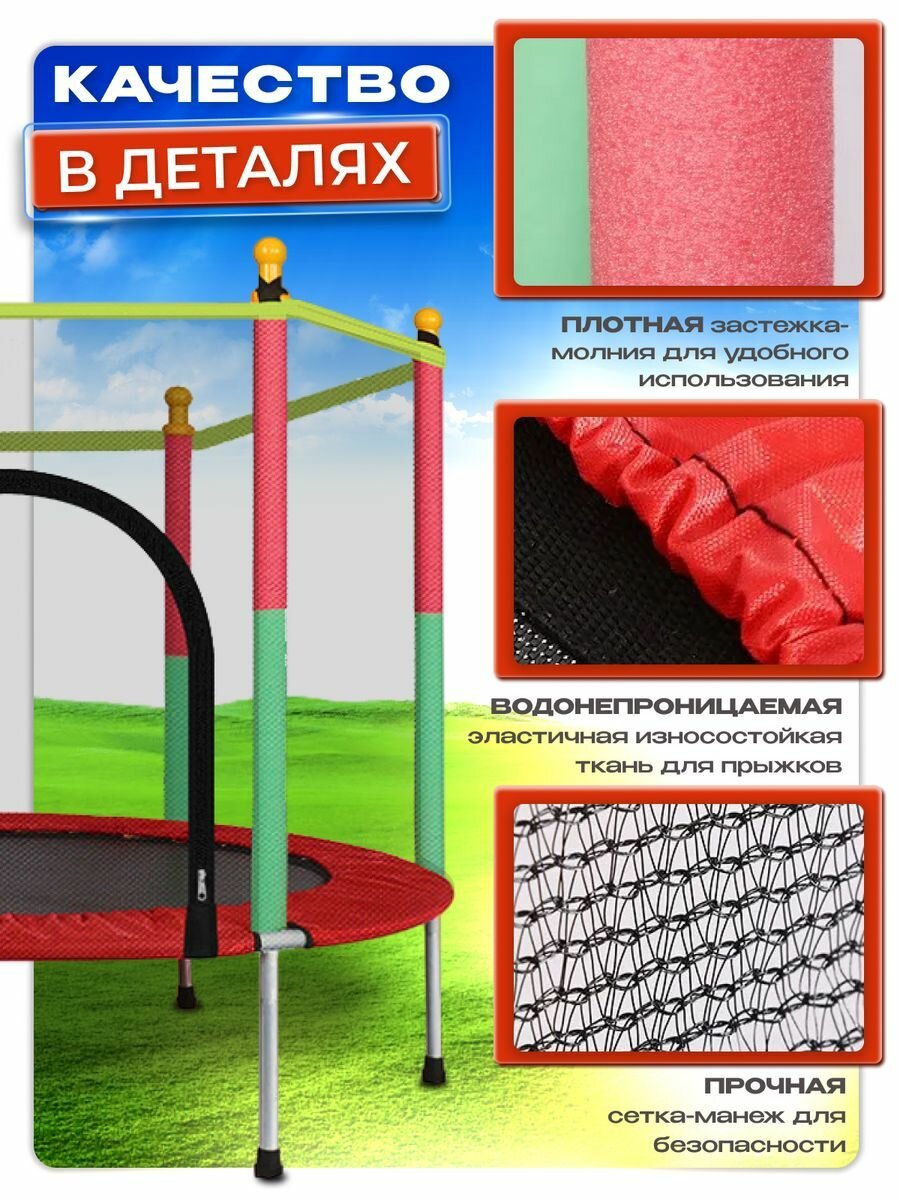 Batutoff Батут детский каркасный с защитной сеткой красный с прямыми ножками интересное: