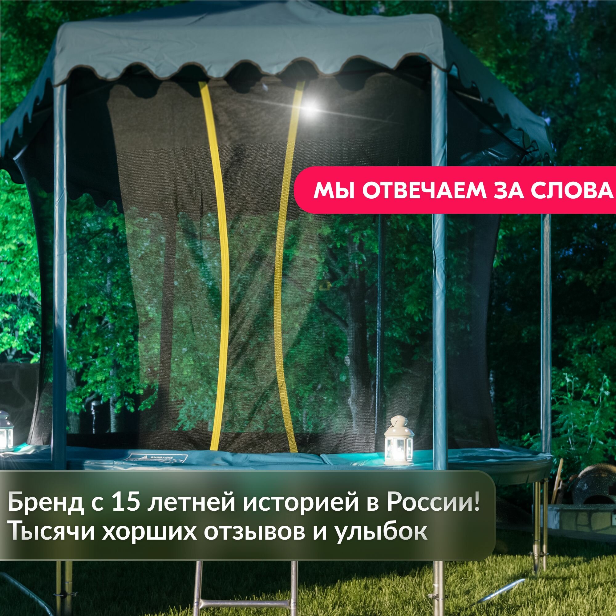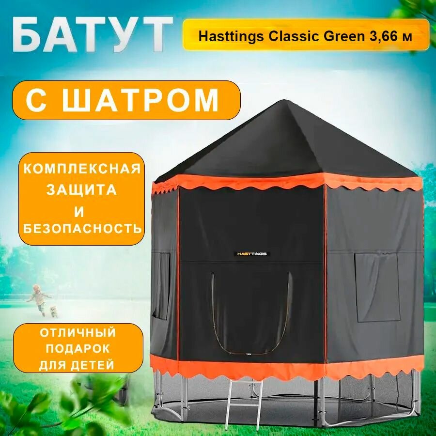 СохранитьДетский батут Hasttings Classic Green 366 см с крышей-шатром от дождя и защитной сеткой / уличный большой 12 ft интересное:
