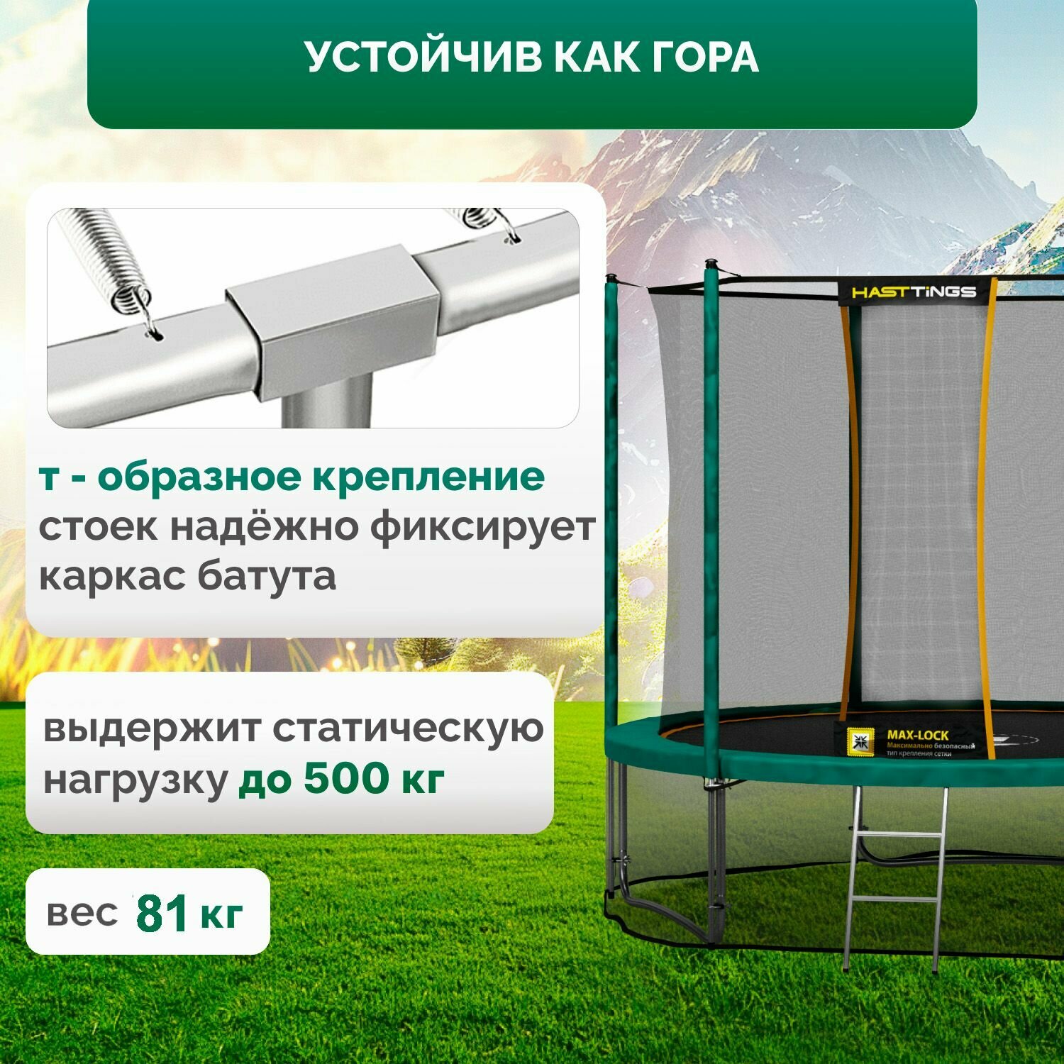 Купить Детский батут Hasttings Classic Green 366 см с крышей-шатром от дождя и защитной сеткой / уличный большой 12 ft