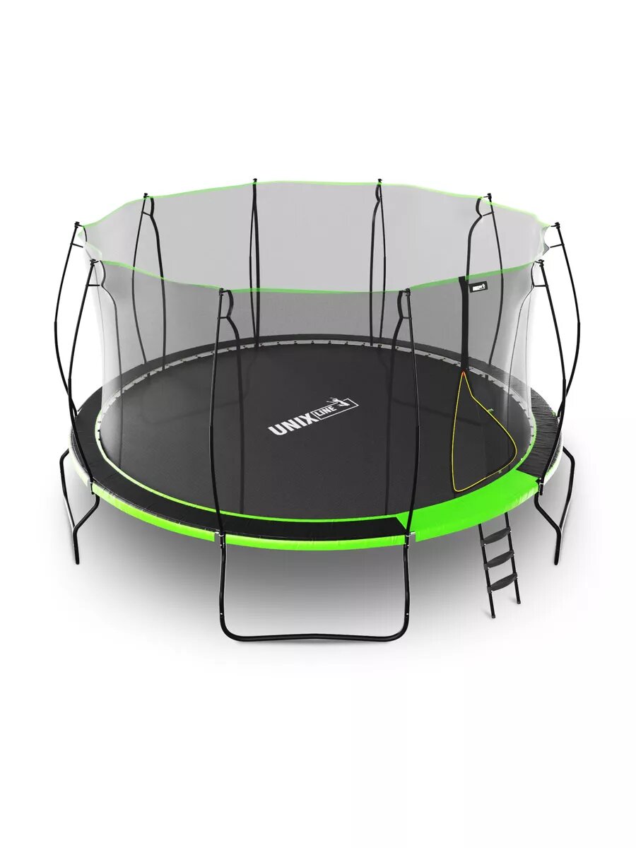 Батут каркасный UNIX Line UFO 16 ft Green, диаметр 488 см, до 150 кг, с внутренней защитной сеткой, для дома и улицы